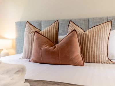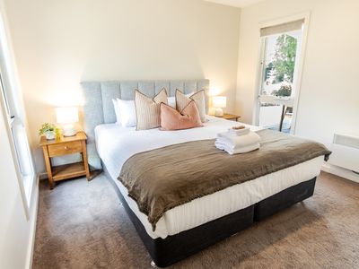 2 stylish & cosy bedrooms each feature pillow-top king split beds, meaning we can configure the perfect bedding for your group of up to 4 guests, plus 1 pooch of course.