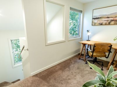 Upstairs you will find your 2nd king bedroom and a stunning full bathroom with a relaxing deep bath to rejuvenate, and of course another of those amazing showers to leaving you feeling a million dollars. At the top of the stairs is a gorgeous reading nook with comfy recliner and leafy view.