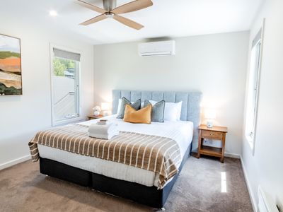 Remote ceiling fans, reverse cycle heating/cooling & wall heating throughout mean a comfortable stay year round.