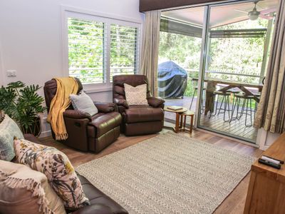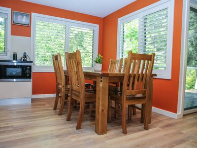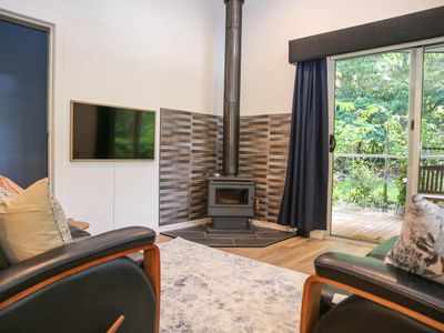 The Poached Pear is 4-bedroom, 3-bathroom home with a space for everyone in the family or group to claim their own private nook. It may be the spacious outdoor garden, elevated deck with private areas on either side of the house, either of the 2 living spaces, 2 dining areas, by either of the 2 wood fires or the serenity of the relaxation room. Need I say more.