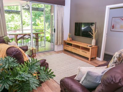 What a sanctuary. This home is truly an oasis. You are welcomed into the home through an abundant garden alive with lustrous flowers, well established trees & and an almost fairy like magic, all while being nestled on the banks of Bakers Gully Creek.