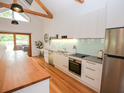 Your modern fully equipped kitchen leads out to your deck with gas BBQ. Enjoy watching the movements of Bright from the deck overlooking the Rail Trail and Bright Community Centre.