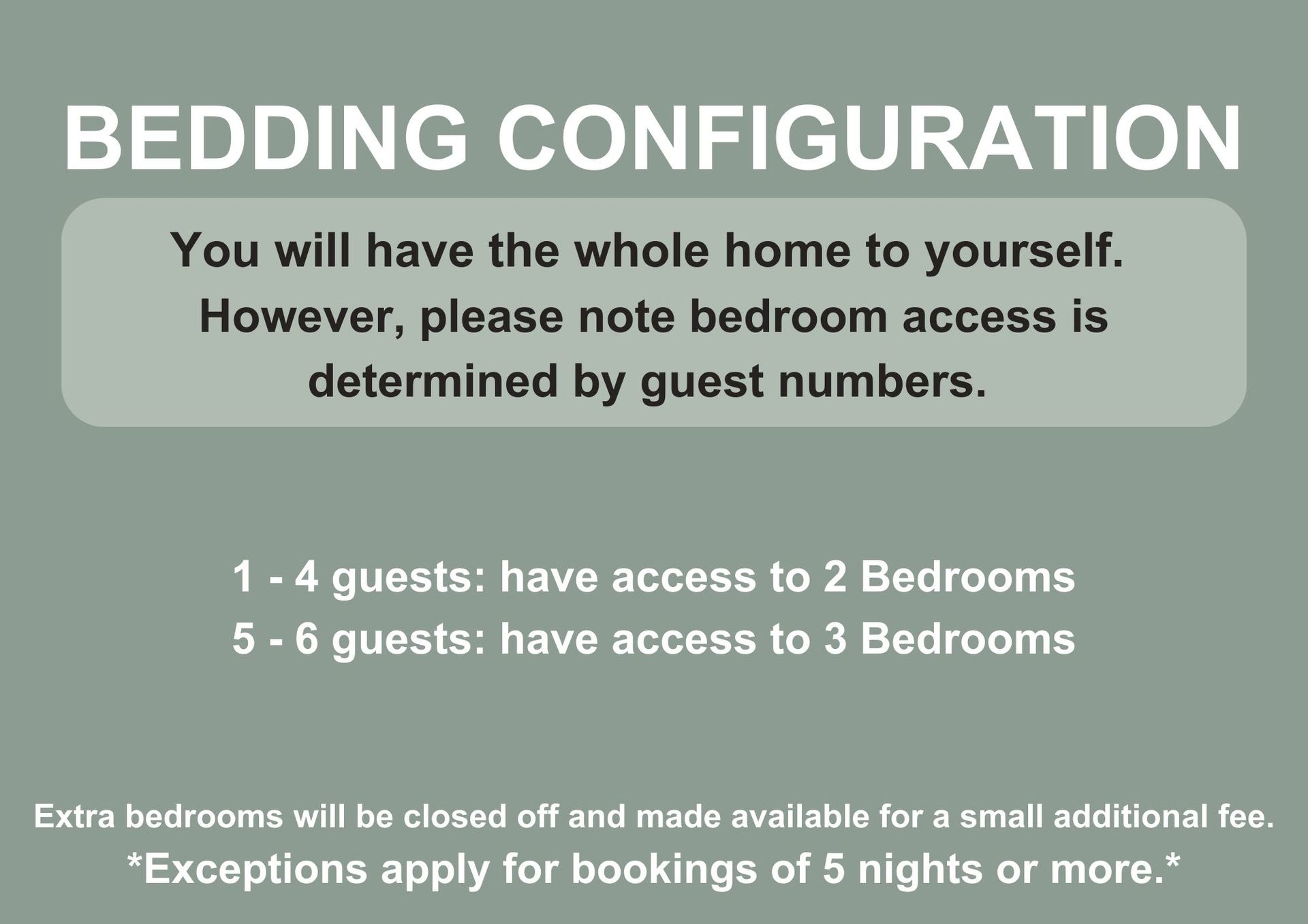 Extra bedrooms available for a small additional fee - Exceptions apply for bookings of 5 nights or more.