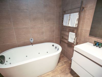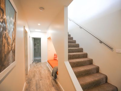 Downstairs, you will find 3 spacious bedrooms with luxe beds and gorgeous bathrooms to match. Your main bathroom even features a deep spa to unwind or a huge rain shower after a long day riding & exploring. The car will still be where you parked when you arrived!