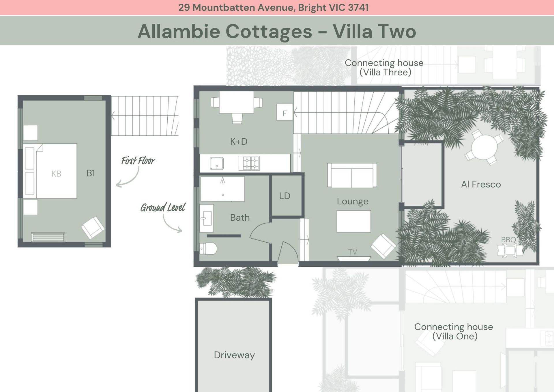 Offering 3 individual 1 bedroom townhouses - Allambie Cottages are the perfect escape with friends to enjoy Bright together with your own private spaces.