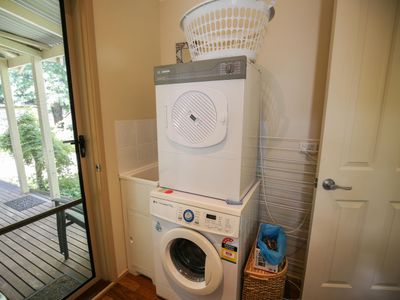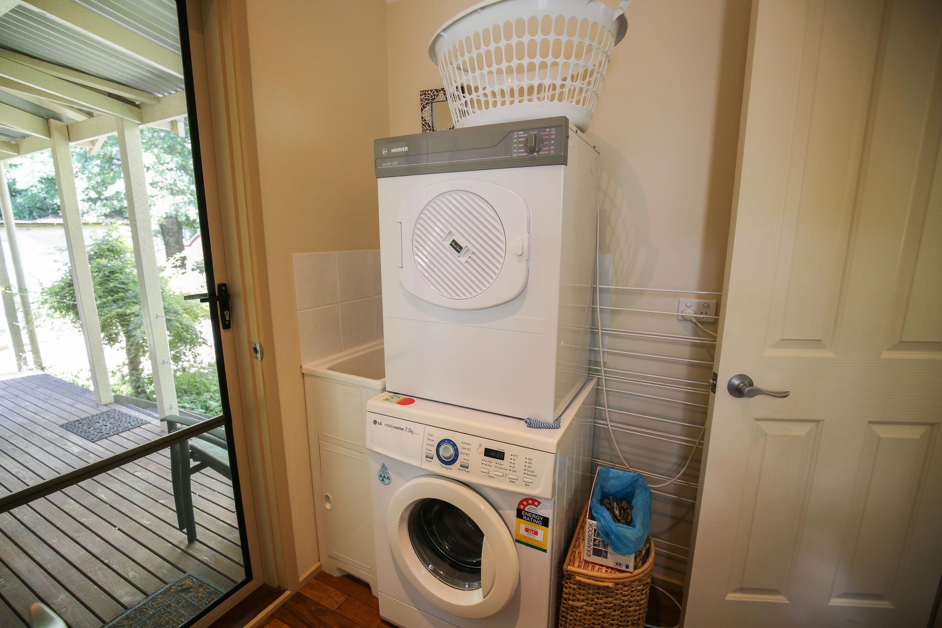 The bedroom has a high queen bed and mountain views to wake to. Private laundry facilities and beautiful garden to laze the day away. A spacious home away from home that will make you feel like royalty.