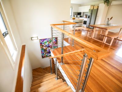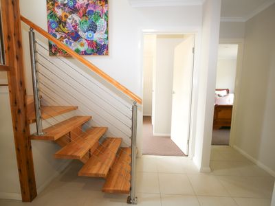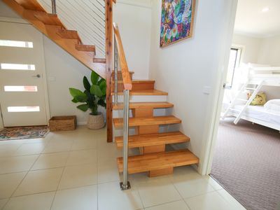 - 2 lower floor bedrooms with comfy beds and split system in master