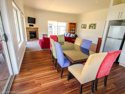 Inside, the electric log fire creates an ambient mood while you enjoy a movie on the large flat screen TV. Reverse cycle heating & cooling will keep you comfortable year round.