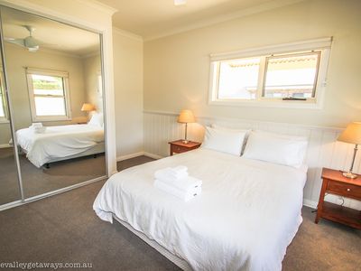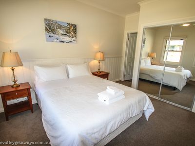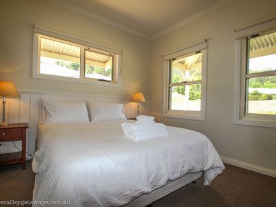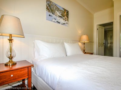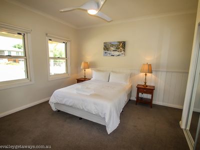 The lovely master bedroom with queen bed offers a stylish ensuite, across the hall another queen room makes it easy living for 2 couples. All bedding & linen is provided, as well as ceiling fans & robes.