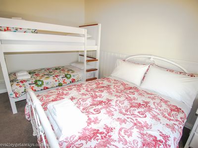 The 3rd bedroom offers a double bed as well as a single bunk to allow the kids their own space, or a couple of extra adults. This rooms also features robes & a ceiling fan.