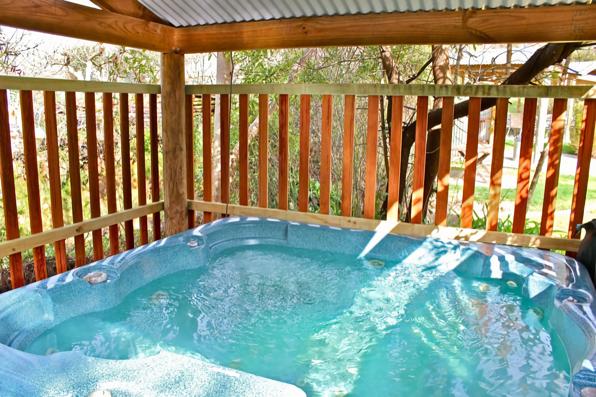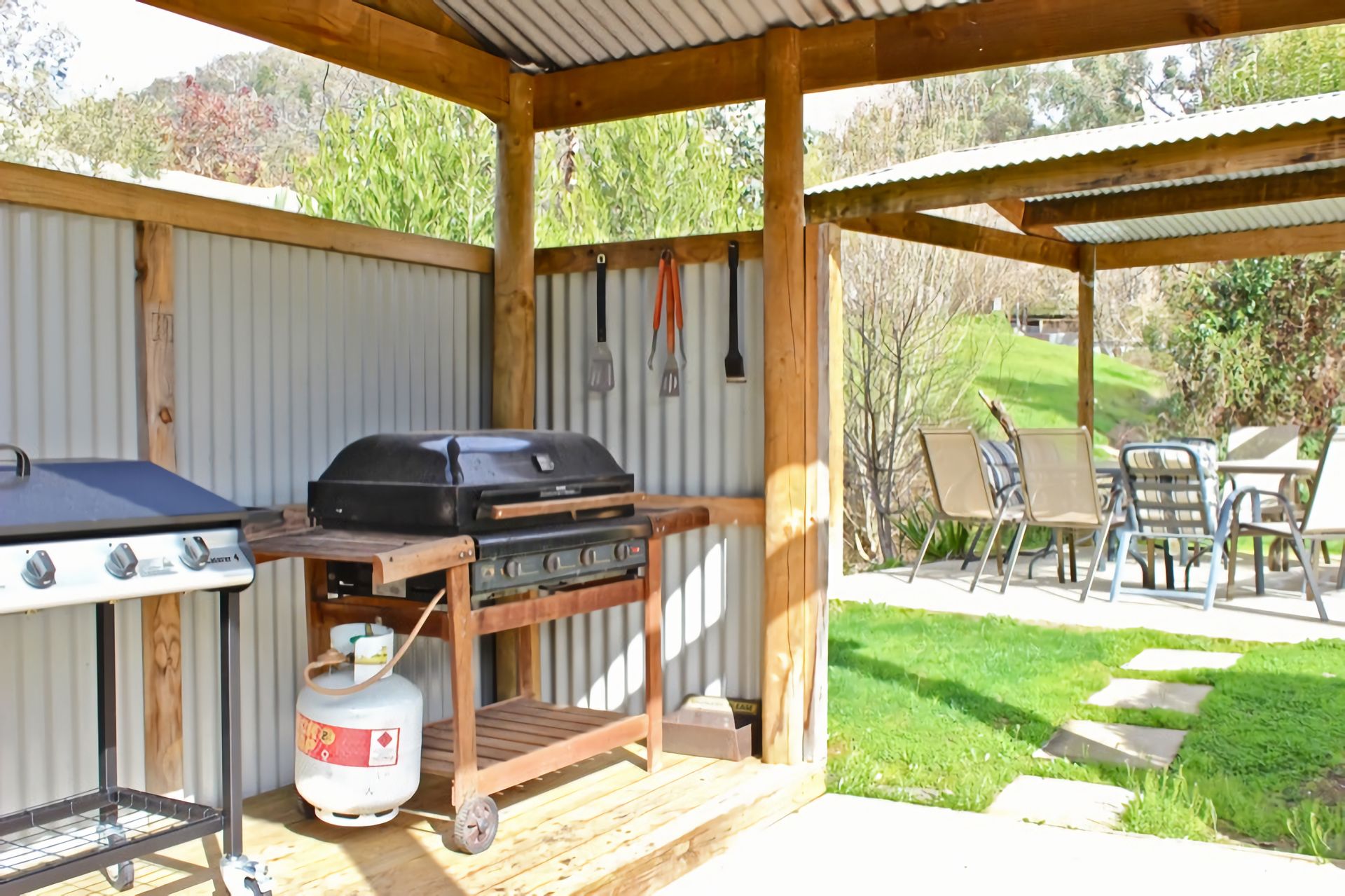 The spacious grounds feature large lawns on one side with room for the kids to play or relax with a good book under the tall trees. The rear of the property features a huge undercover jacuzzi and shared BBQ facilities for your use.