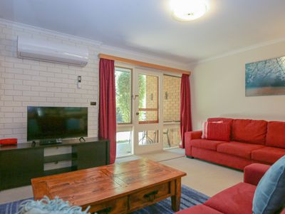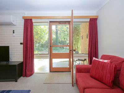 The open plan living & dining area features reverse cycle heating & cooling, TV/DVD/Ipod as well as a private patio to relax. The well equipped kitchen has all the cooking facilities you could need including an oven/stove & full size fridge.
