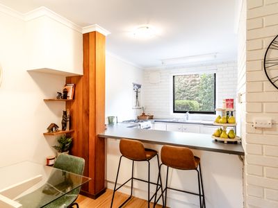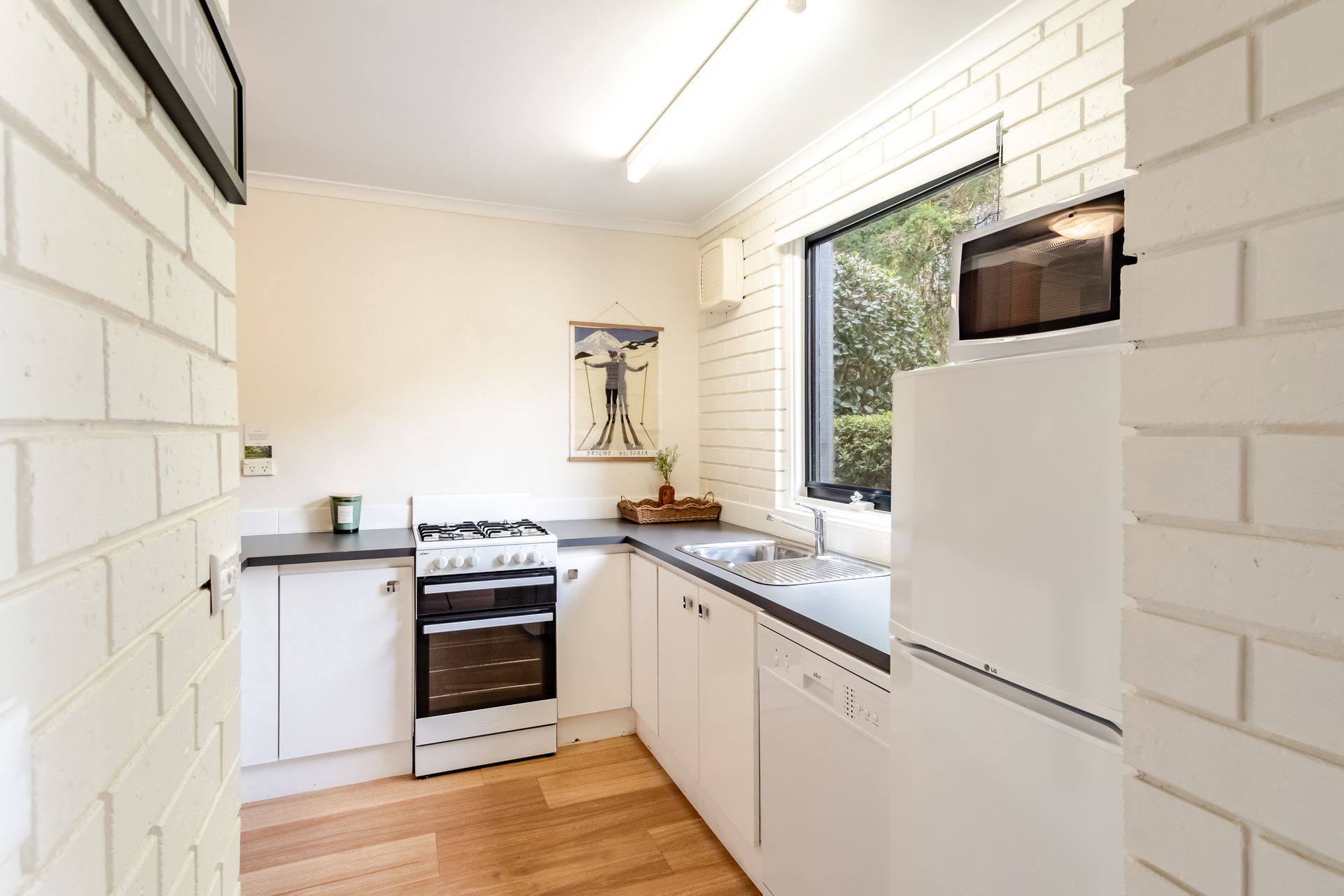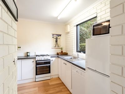 The open plan living & dining area features reverse cycle heating & cooling, TV/DVD as well as a private patio to relax. The well equipped kitchen has all the cooking facilities you could need including an oven/stove & full size fridge.