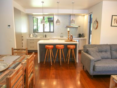 The 3 beautiful bedrooms feature King/Queen beds or king singles with each room boasting their own ensuite with double shower and Flat screen TV/DVD to enjoy your own space. A fully equipped laundry, facilities for families including high chair, a fully secured yard, free WIFI and.... your well behaved dog is welcome too!