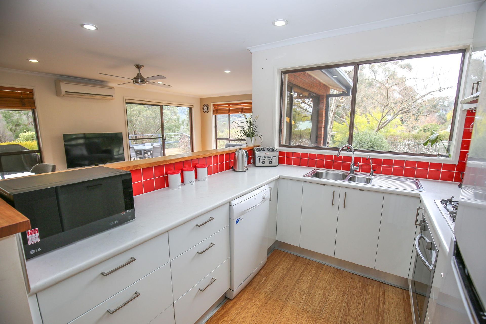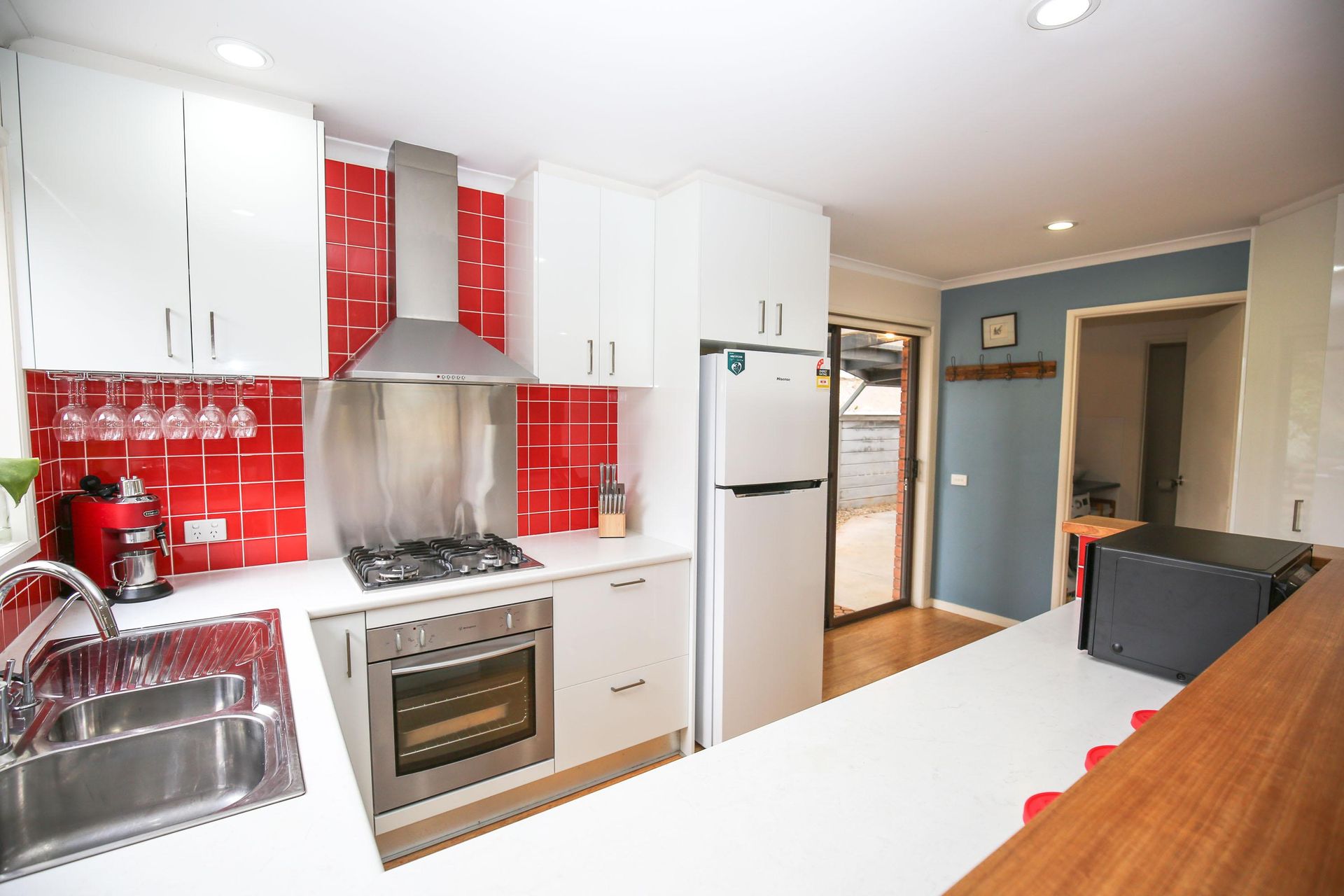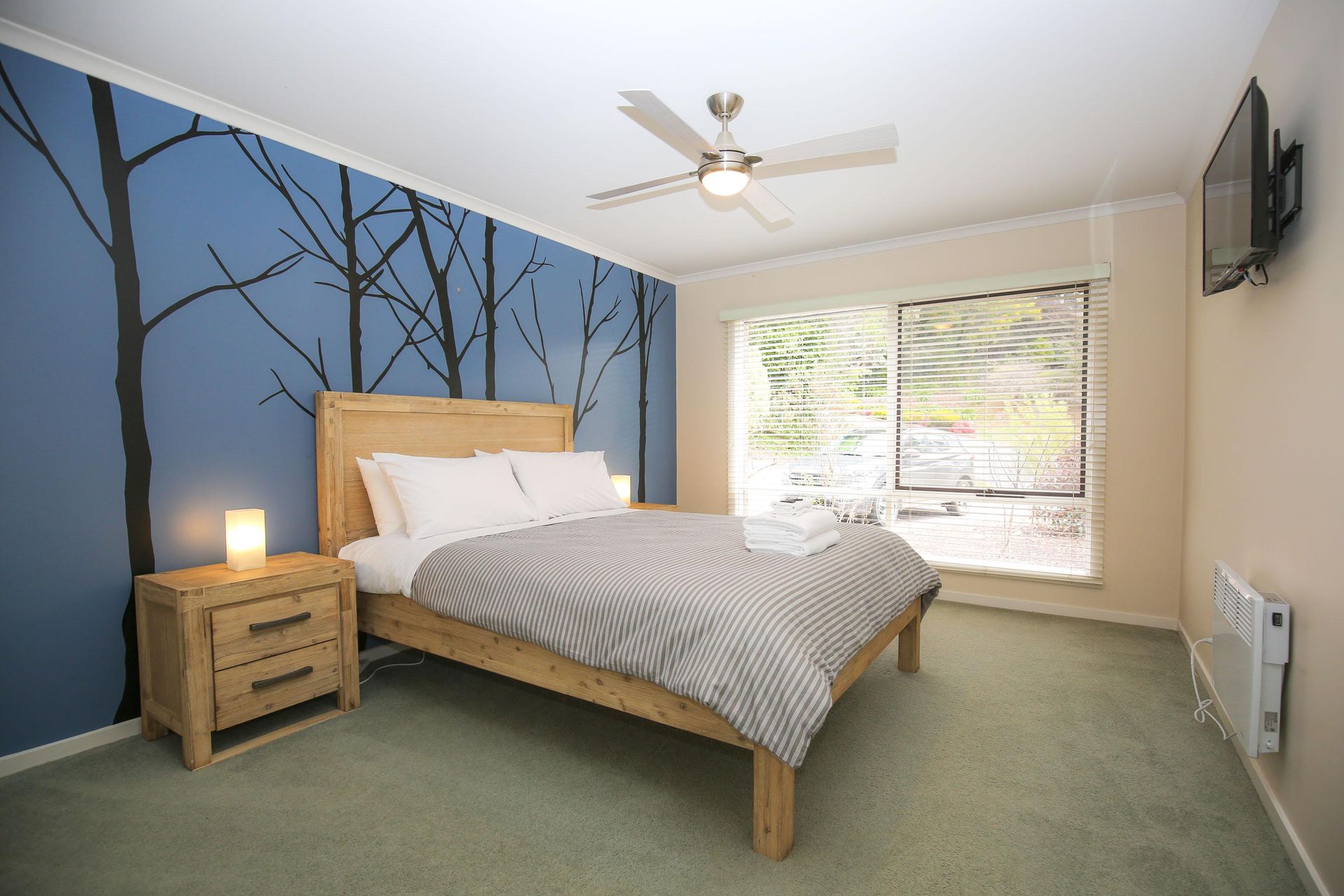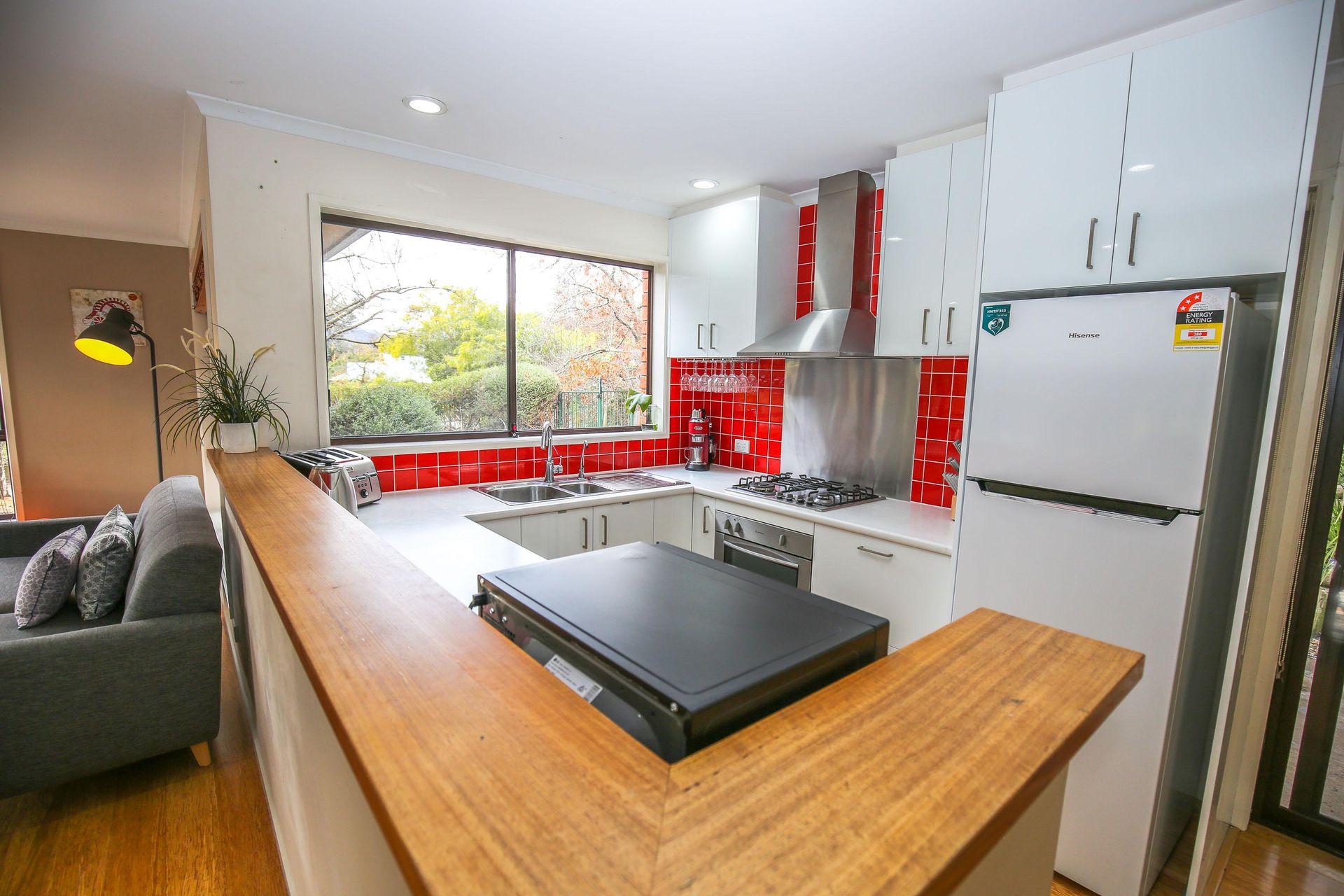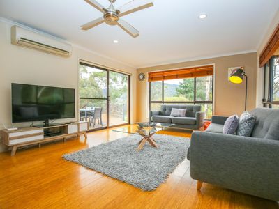 The sunny & open living space features a smart TV/DVD with WIFI provided. Congregate in the dining area by the enclosed wood fire or cool down under the split system in Summer.