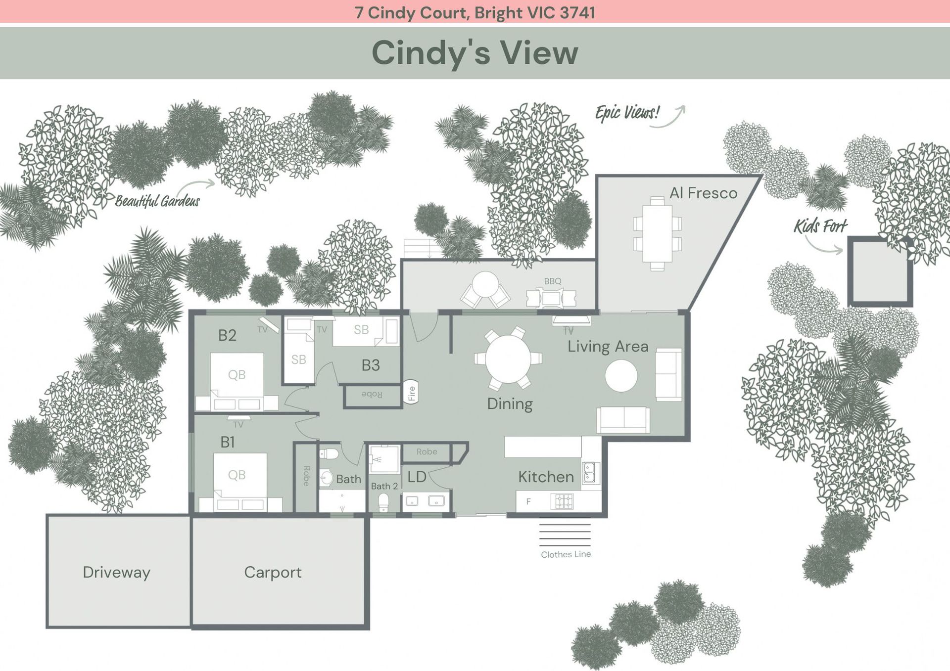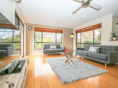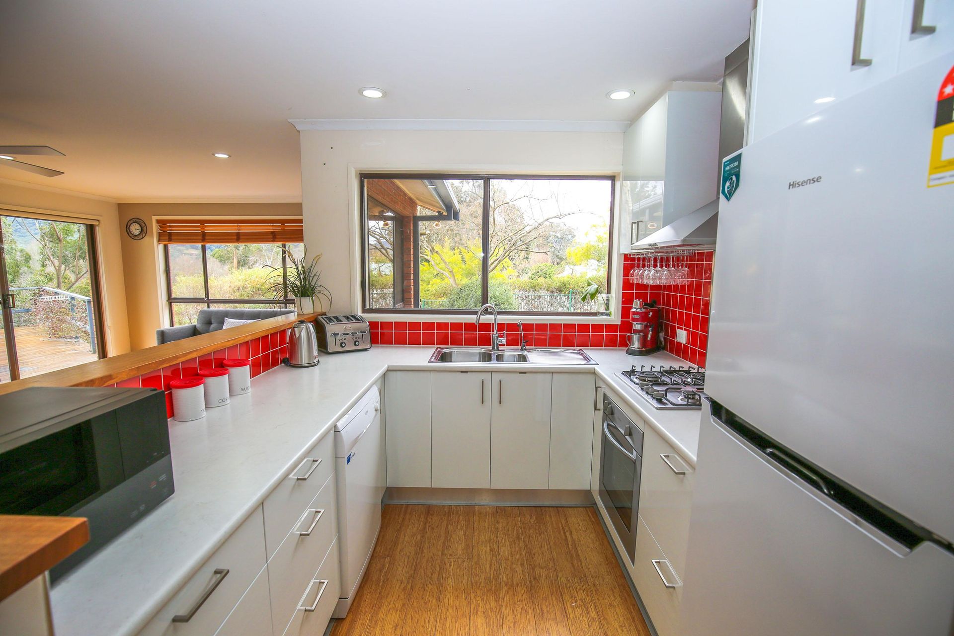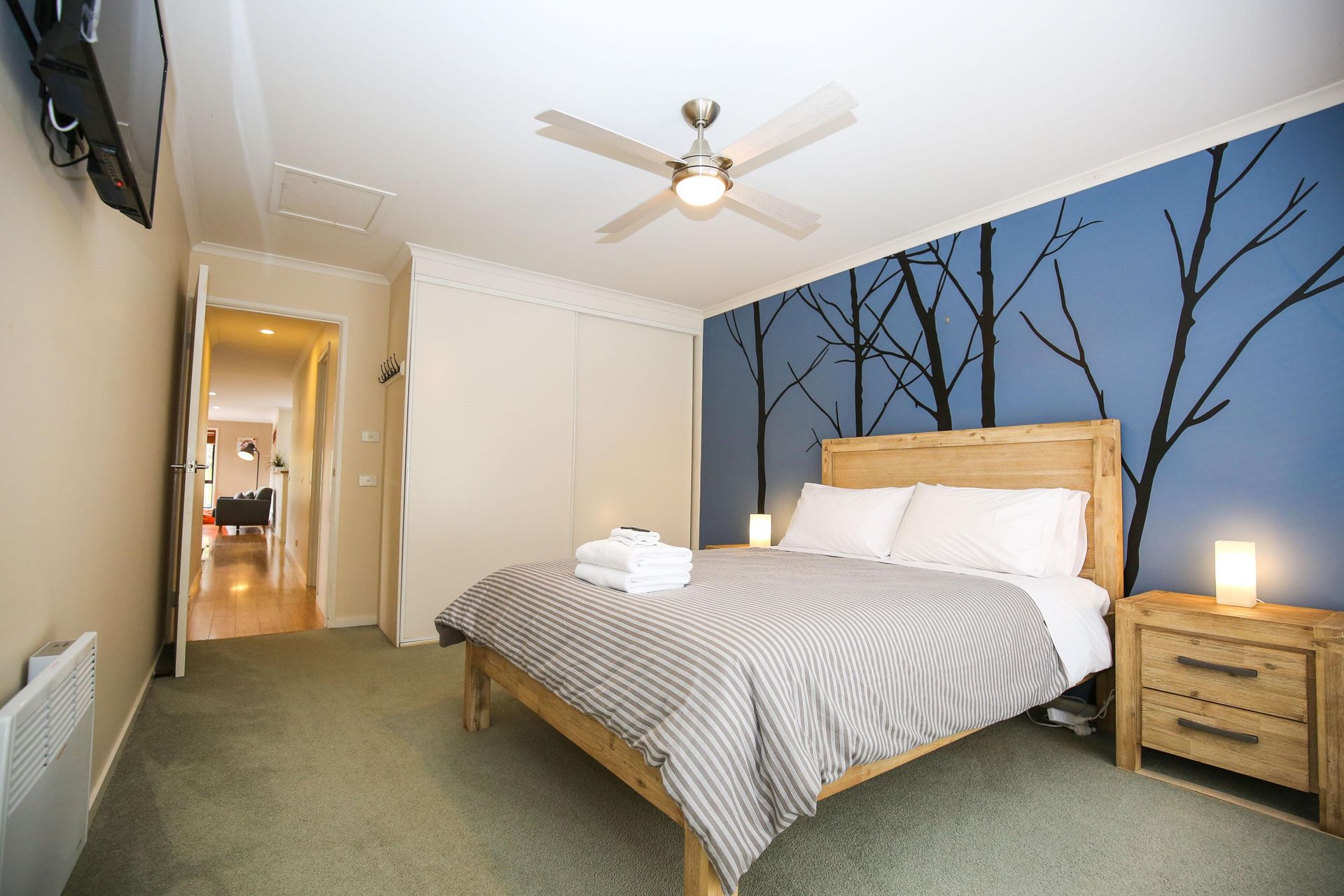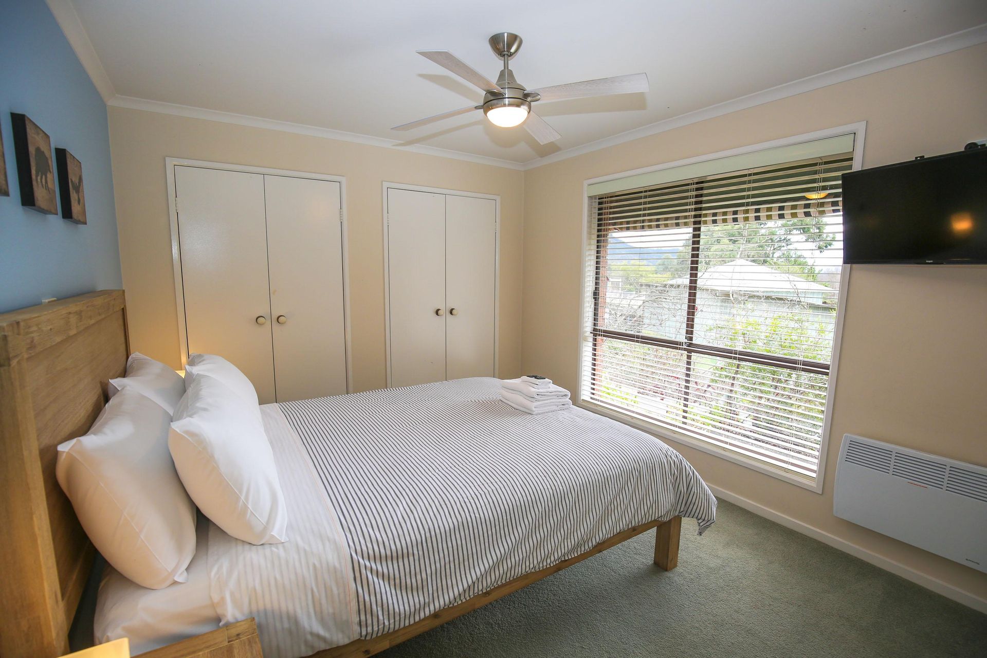 The sunny & open living space features a smart TV/DVD with WIFI provided. Congregate in the dining area by the enclosed wood fire or cool down under the split system in Summer.