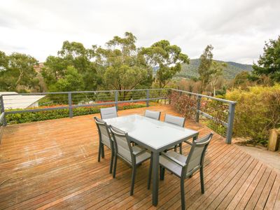 The light & airy fully equipped kitchen offers everything you could need to create a family feast or BBQ with mountain views on the spacious deck. Wine & dine under the stars or watching the world go by way beneath you.