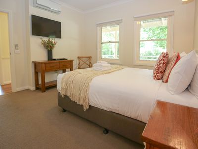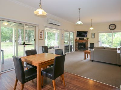 Situated on the banks of the Ovens River you can dip your toes into the fresh Alpine water in your backyard, or watch the kids play while you relax with a glass of local wine! Boasting open plan living with flat screen TV/DVD, surround sound, Free Austar as well as an electric log fire you will be well entertained. Free WIFI is provided for your convenience also.