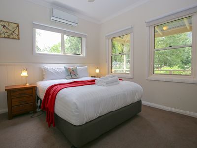 Three beautiful bedrooms sleep up to 6 guests, the master with ensuite & TV while the 3rd bedroom has the cosiest window seat to curl up on. Each bedroom features its own reverse cycle heating & cooling for year round comfort and all bedding & linen is provided.