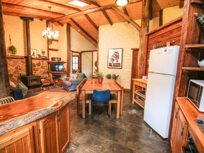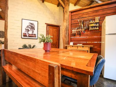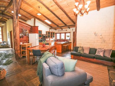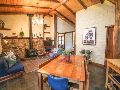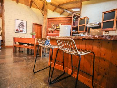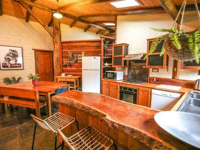 The fully equipped kitchen features redgum benchtops overlooking the open plan living & dining areas. The Nespresso machine will cure the cravings and the kitchen offers everything you could need. The cosy lounge has plenty of space for everyone to curl up by the fire and the entertainment unit offers surround sound TV/DVD/CD & Ipod.