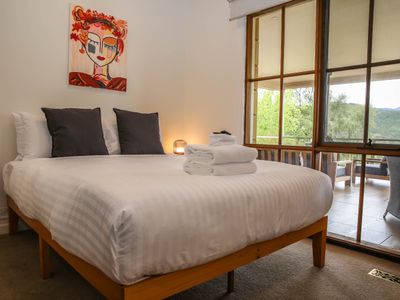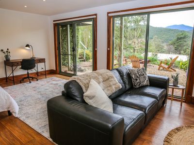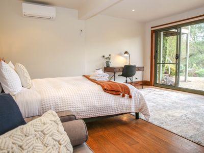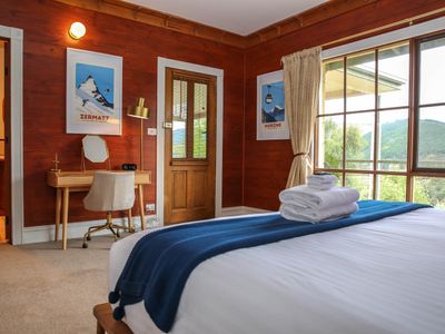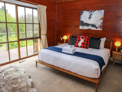 On entry to the home the master king bedroom steels the show with gorgeous views, its own ensuite, trendy Alpine vibes and direct access to the deck. The second room is fitted with 2 bunk beds suitable for children, a 3rd bedroom with a queen bed and a downstairs studio is the 4th, an added bonus with its own bathroom, living space with TV & direct access to the gorgeous gardens.