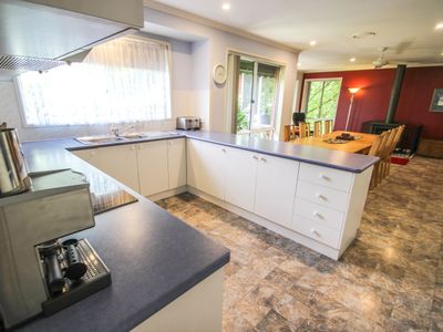 Your fully equipped kitchen with coffee machine overlooks your spacious dining & sitting area with table for 10 and gorgeous wood fire. Relax with a good book by the fire or enjoy the afternoon sun. A TV with Ipod/CD player offers entertainment while you enjoy a game around the table.