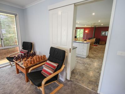 The comfy lounge features a flat screen TV with loads of DVDs, books & games to keep you entertained. Reverse cycle heating and cooling and a lovely outlook.