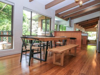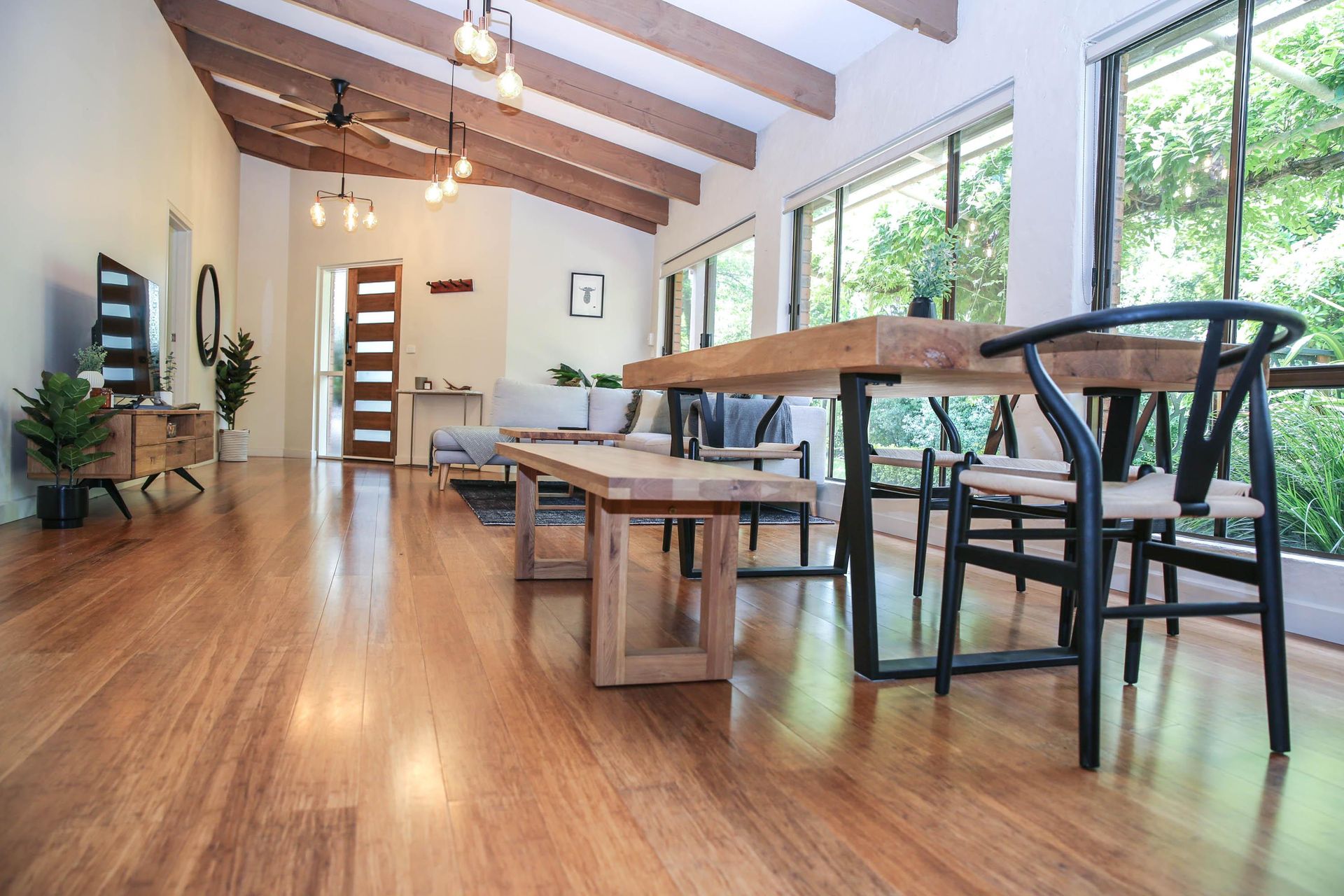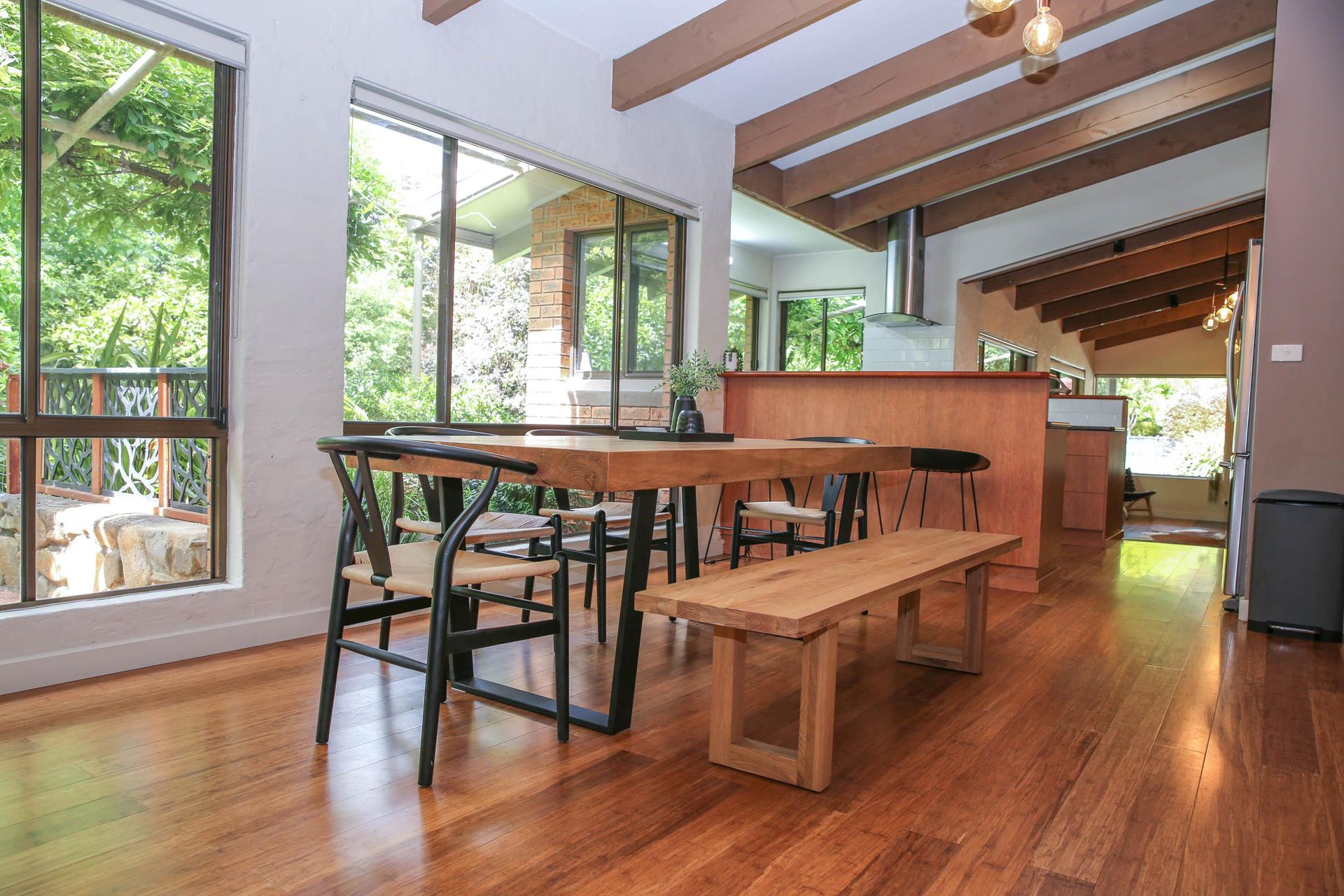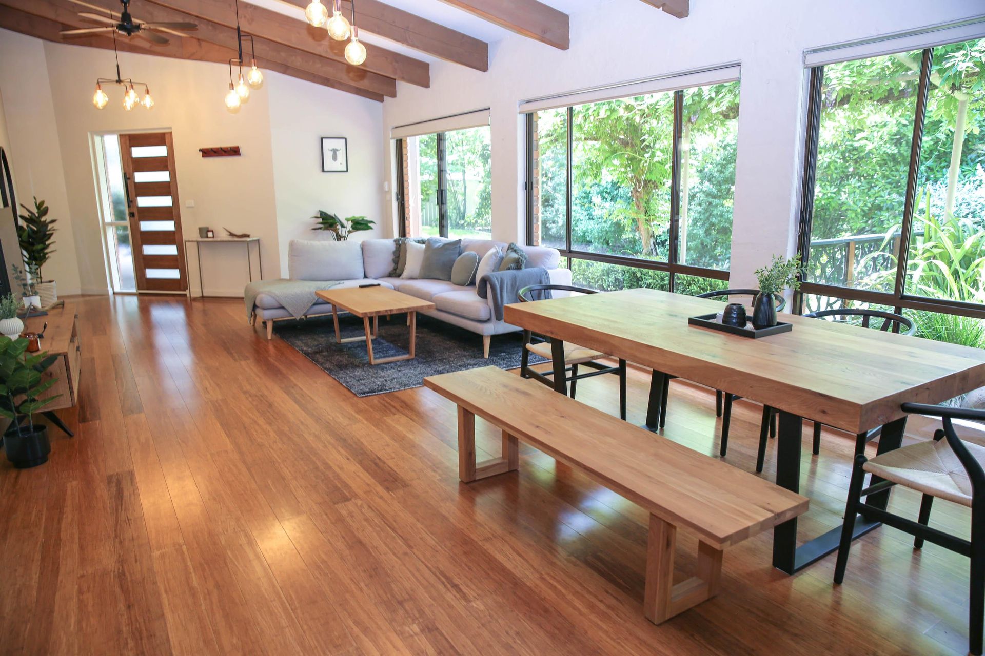 Spacious Open-Plan Living: Enter a world of elegance in the open-plan living and dining area adorned with beautiful timber features.