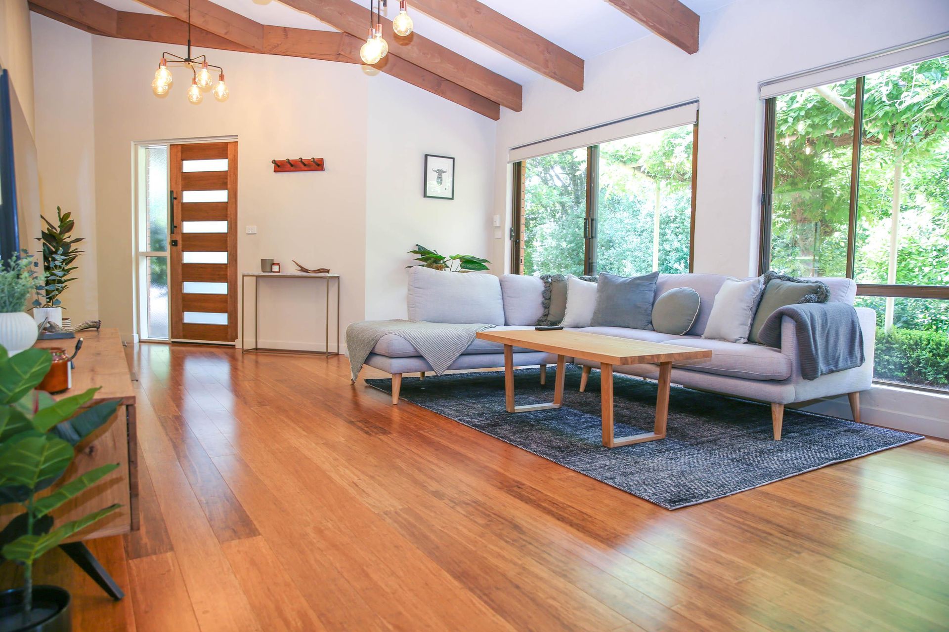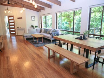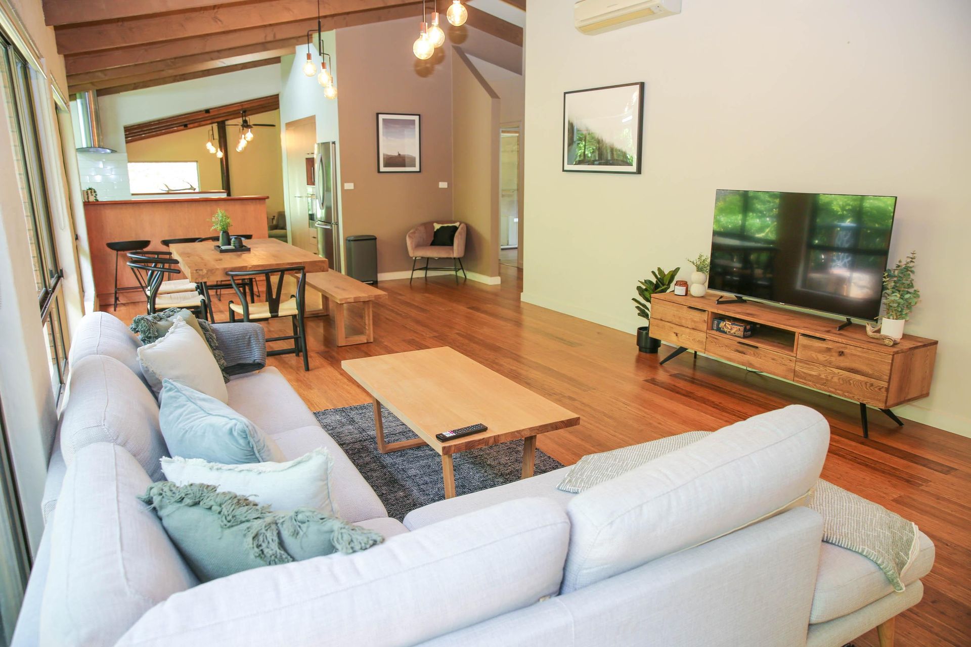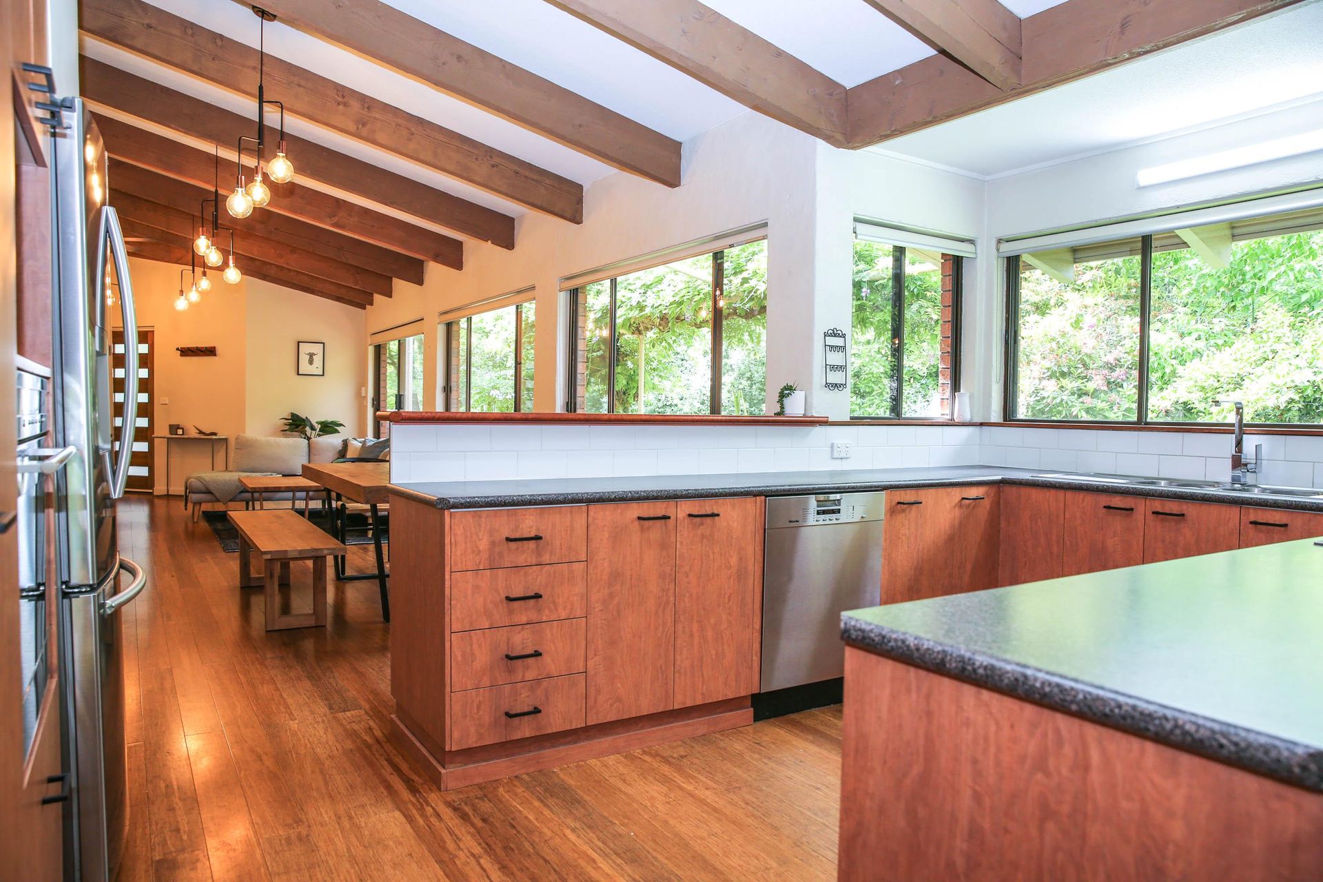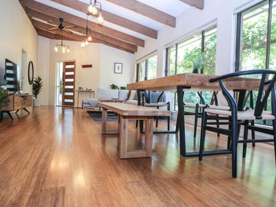 Spacious Open-Plan Living: Enter a world of elegance in the open-plan living and dining area adorned with beautiful timber features.