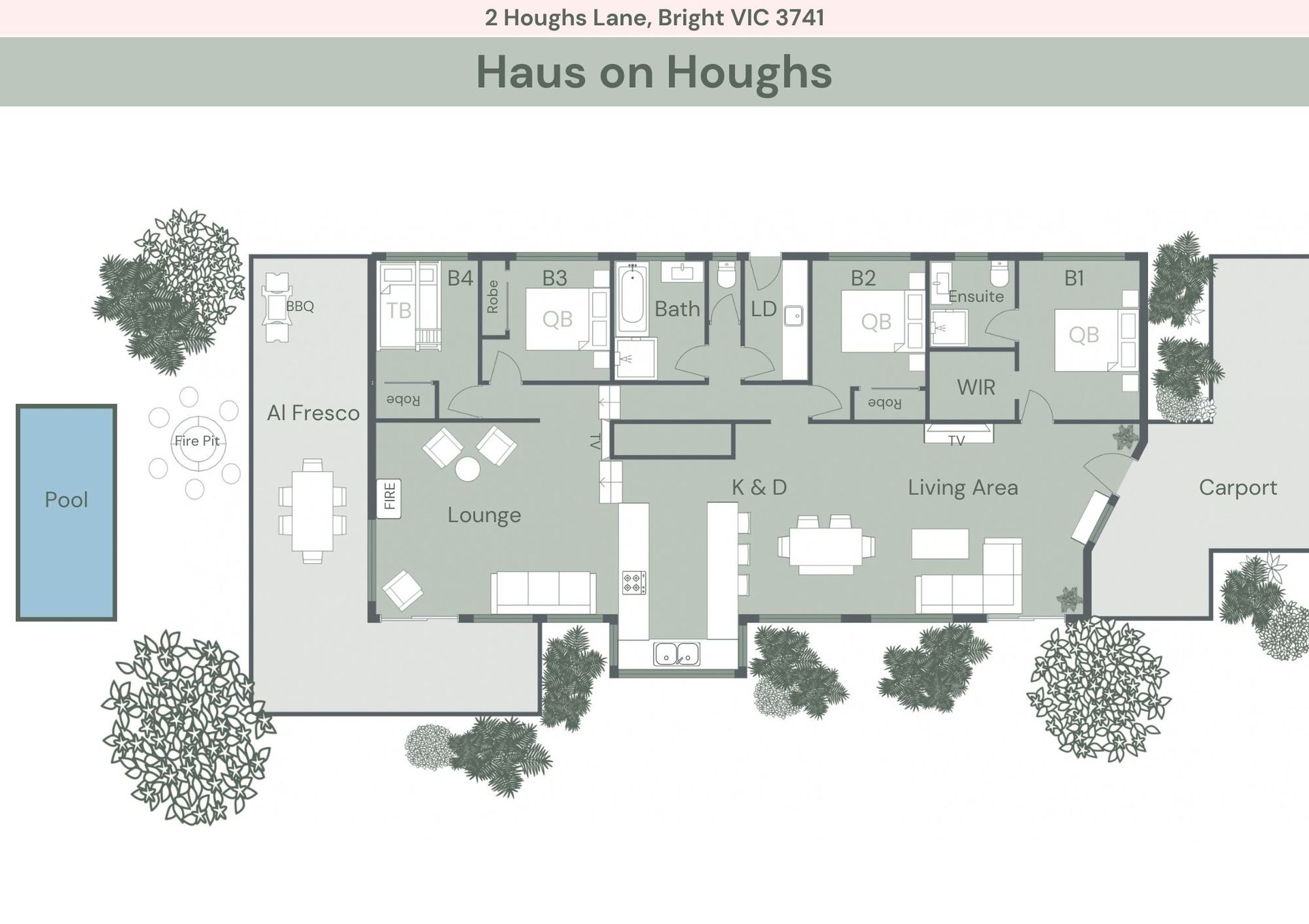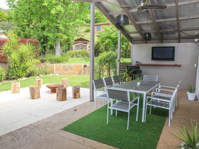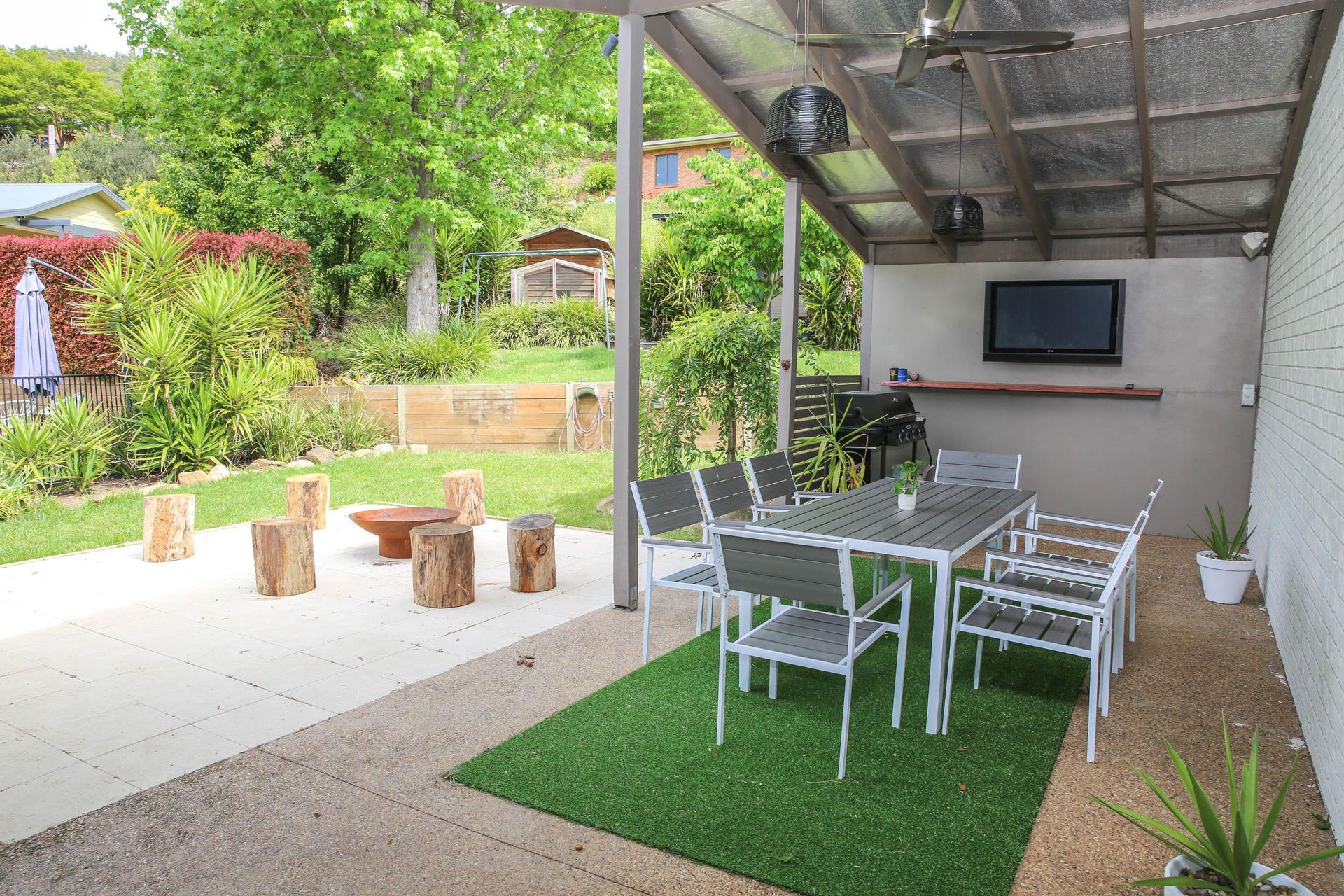 Undercover Alfresco Dining: Step into the breezy outdoor area with an undercover dining space, fire pit, gas BBQ, and outdoor TV for memorable evenings.
