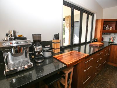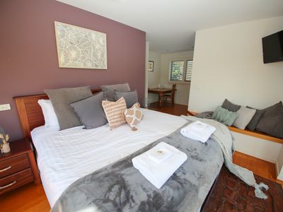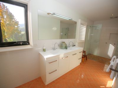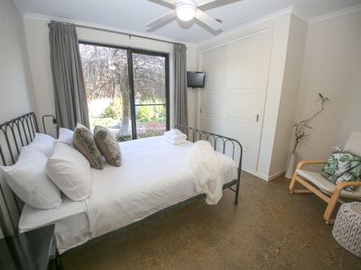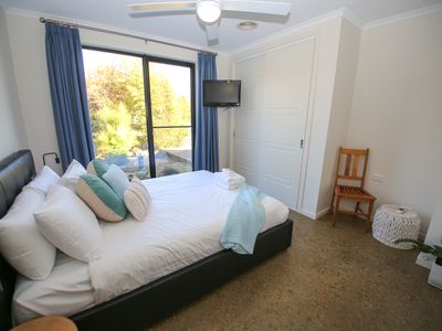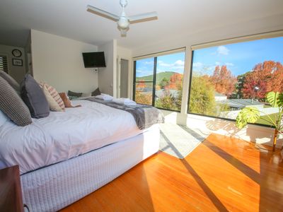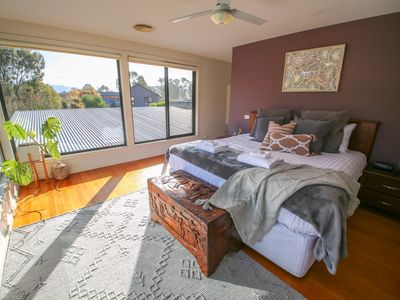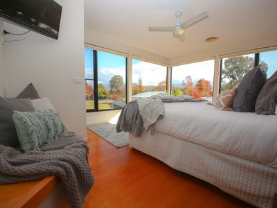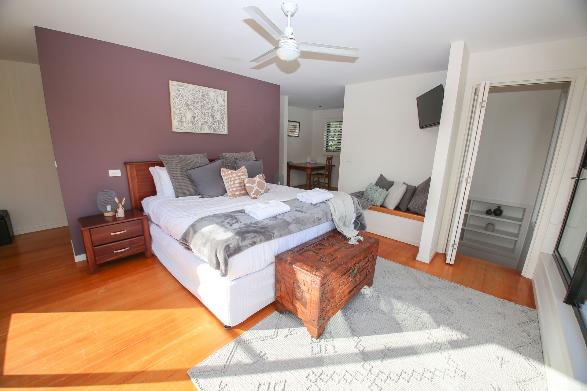 While the master bedroom is certainly the pick of the bunch, even the smaller rooms all have queen beds, built in robes & floor to ceiling sliding glass doors to take in the surrounding gardens and views of the mountains & hills.
