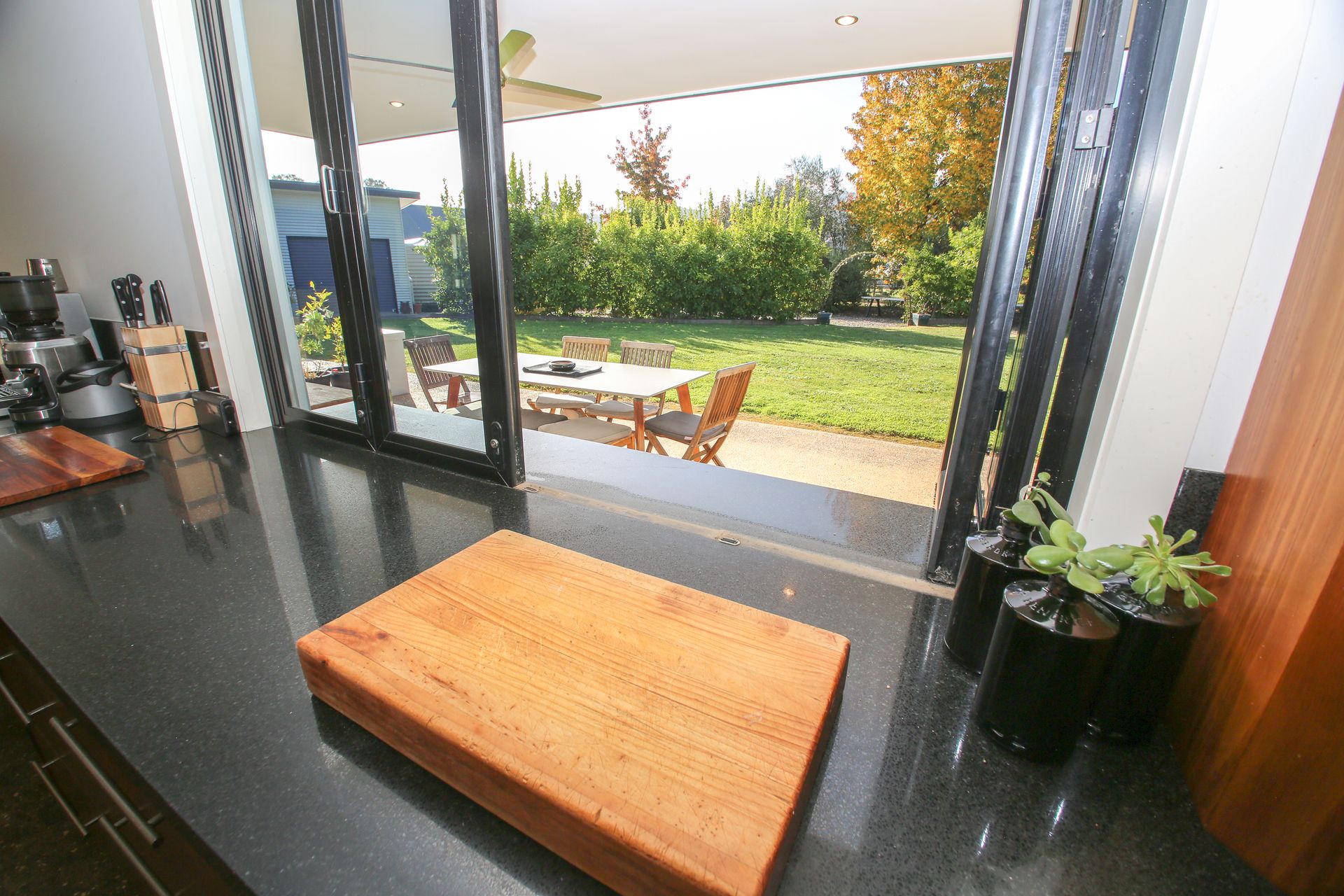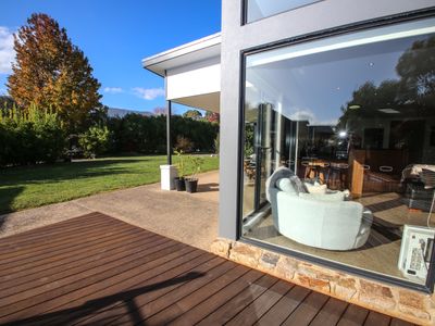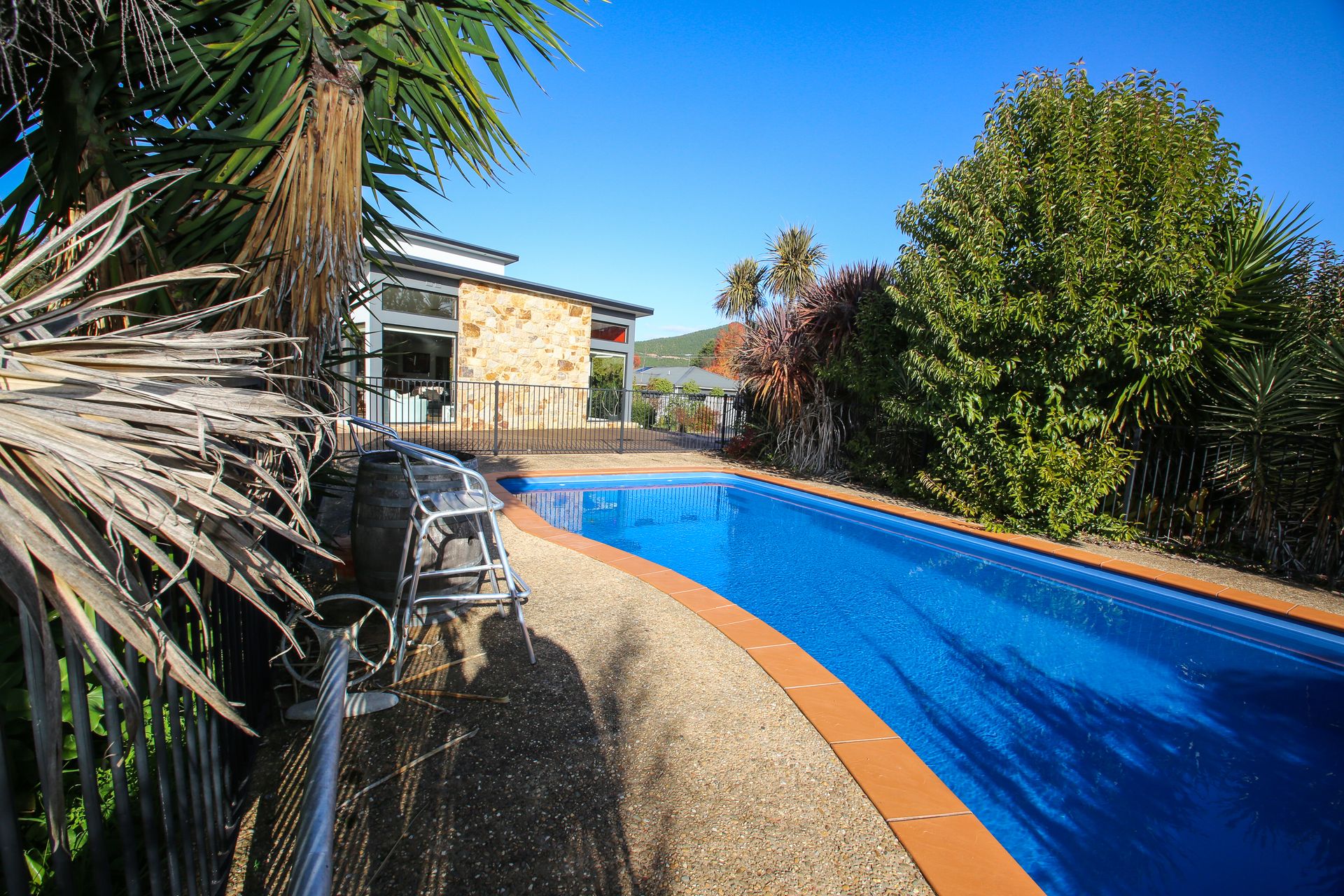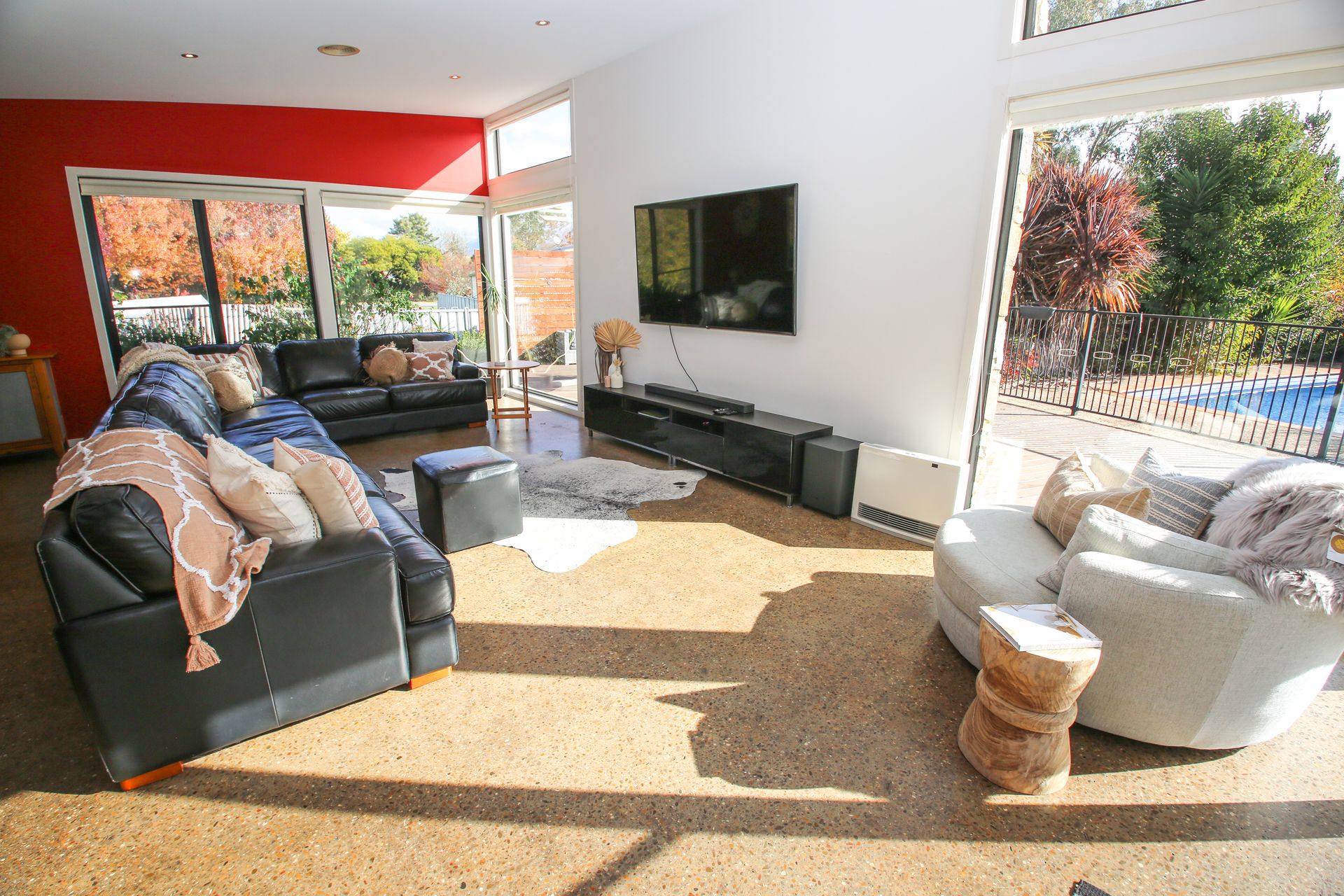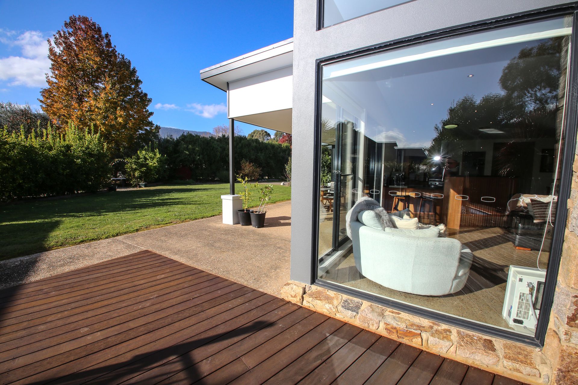 Picture windows, glass sliding doors and a kitchen servery window, all lead out to the gardens, alfresco area, BBQ & swimming pool areas, making this home an entertainer’s paradise for family and friends to come together for their next holiday in Porepunkah.