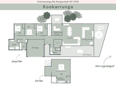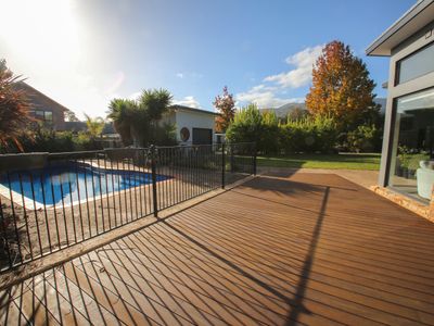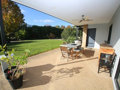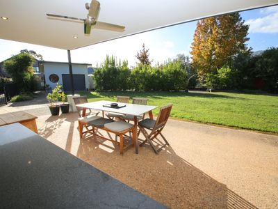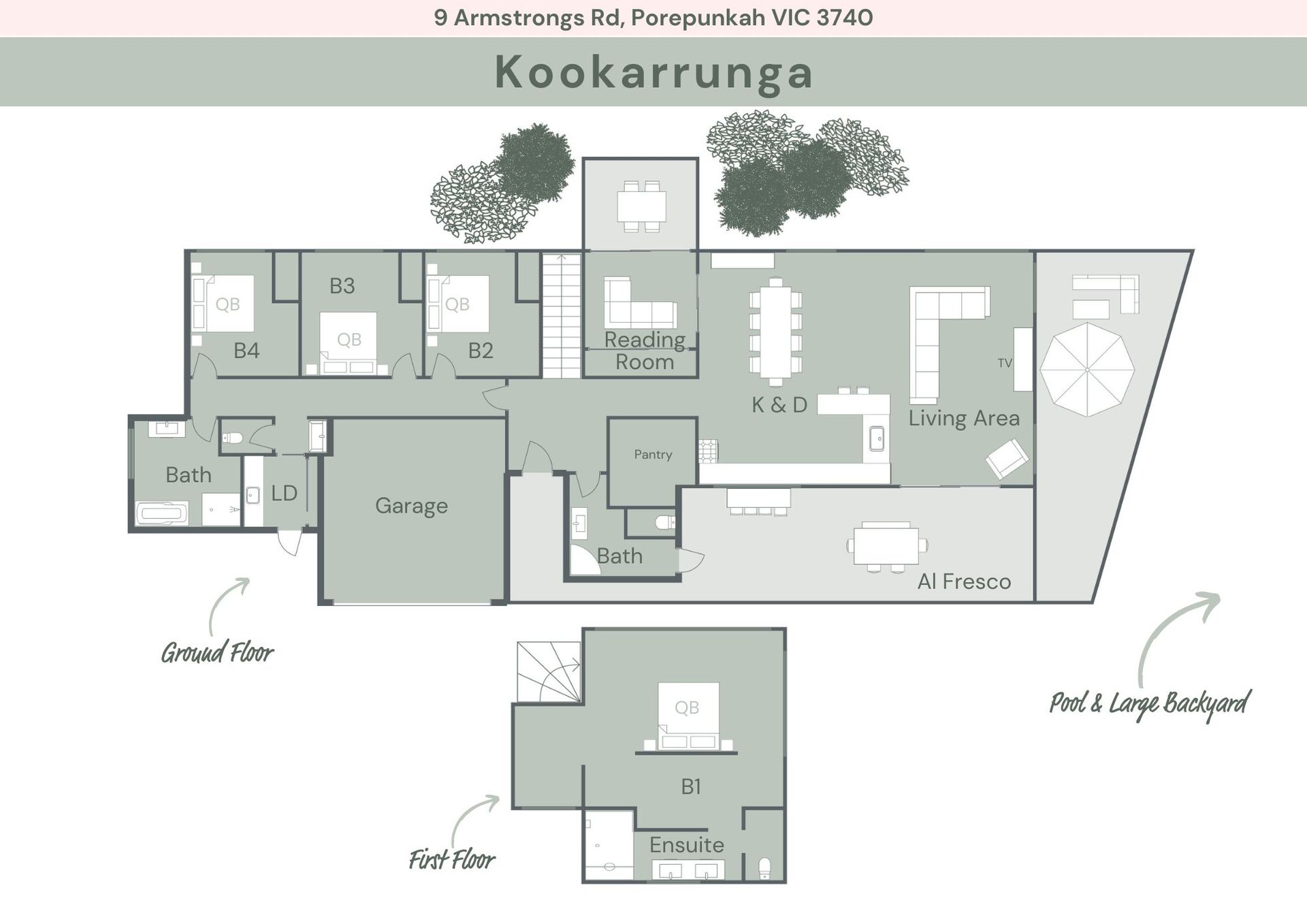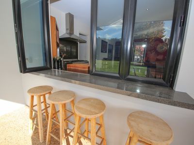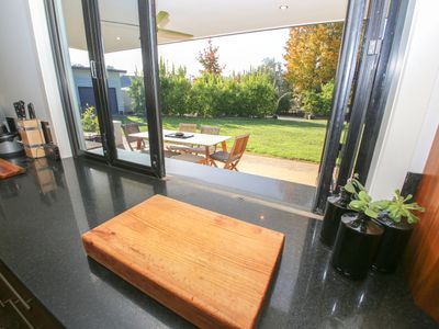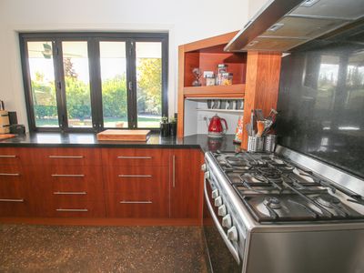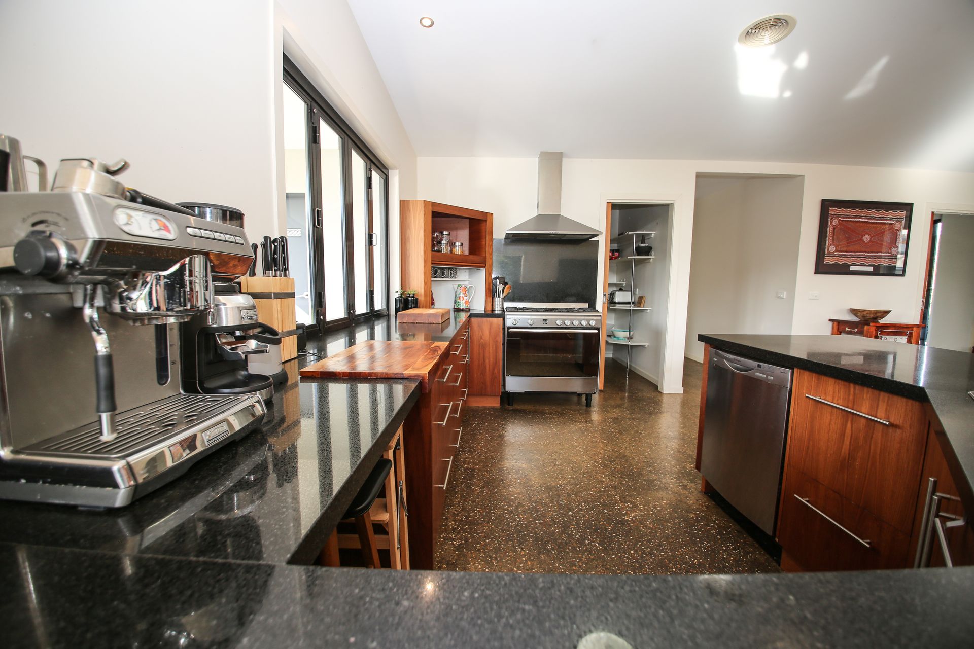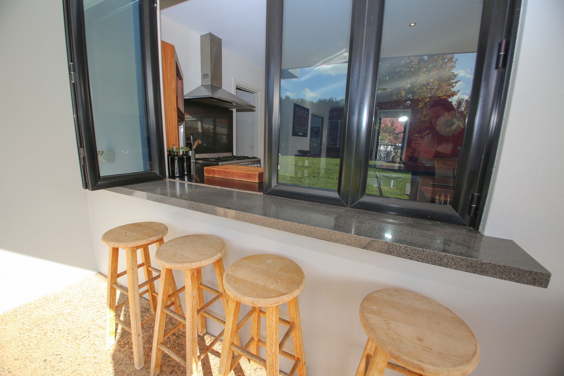 Picture windows, glass sliding doors and a kitchen servery window, all lead out to the gardens, alfresco area, BBQ & swimming pool areas, making this home an entertainer’s paradise for family and friends to come together for their next holiday in Porepunkah.