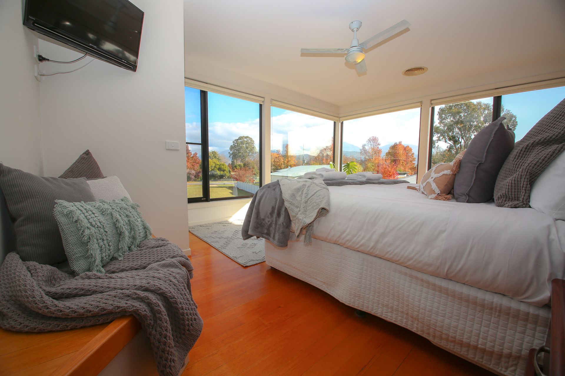 The master bedroom sits upstairs & enjoys uninterrupted views towards Mount Buffalo. With an adjoining study this home makes the perfect mobile office plus a massive walk-through wardrobe & ensuite with his and her vanity and a double shower to top it off.