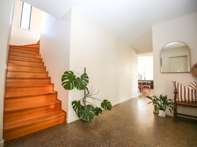 The three downstairs bedrooms share the main bathroom fitted with a walk-in shower and bathtub plus there’s the option to use the shower located near the entertainment area positioned to rinse off after your day in the sun or lounging by the pool.