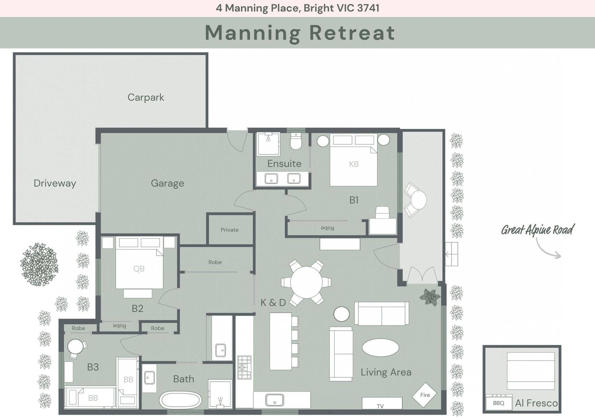 - Close to Bright’s town centre via the Rail Trail, local wineries, and adventure activities