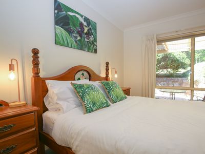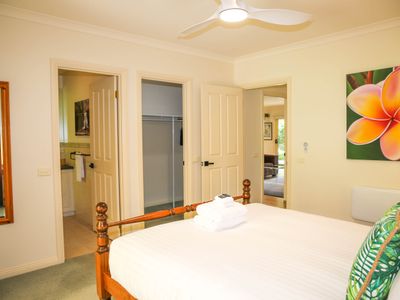 The master bedroom looks out to a tranquil back verandah & garden and also has its private seating area to enjoy a sneaky morning coffee. It also has its own ensuite and walk in robe.
