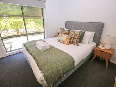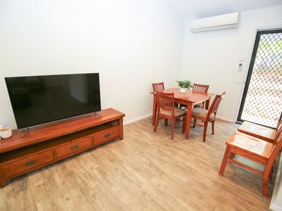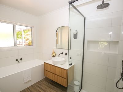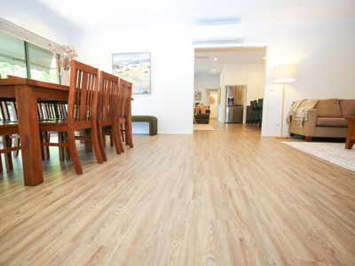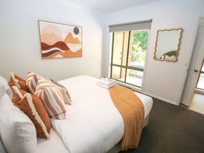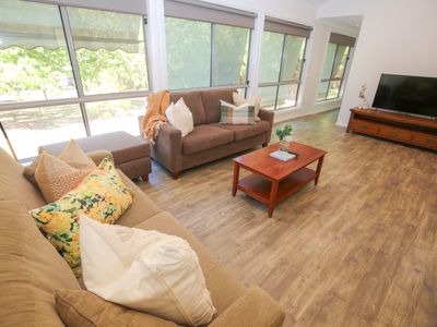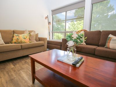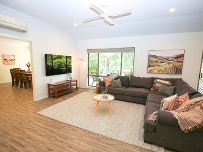 The divided open plan living areas are ideal for a red wine by the enclosed fire in winter, streaming your favourite shows as the kids play happily. In Summer, enjoy the lounge on the deck and relax in air conditioned comfort.