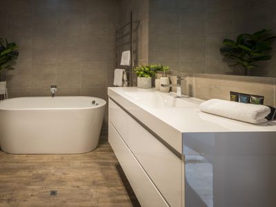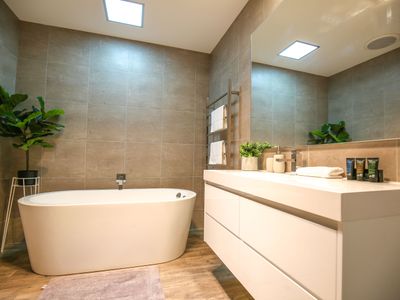 + Simply stunning master bathroom with a deep spa