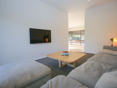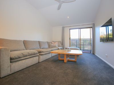 The dining area can seat everyone, luscious leather couches surround your wood fire in the open plan family area perfect for those cosy nights. There’s also a separate TV room with an additional oversized modular couch to sink into for movie nights or to provide another area for kids to hang together.