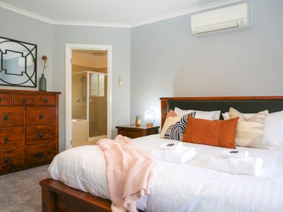 On entering the home, you are welcomed by the wide-open hallway and airy layout of the home. The master bedroom is perfectly positioned, away from the rest of the house and is fitted with a walk-in robe and its own full size ensuite. There is even a deep spa bath to relax and recover from your day’s adventures.