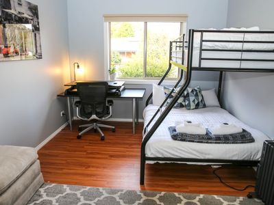 The home has another 2 queen bedrooms, a 4th room with a kids bunk and separate single bed and a 5th with a double tri-bunk and desk, ideal for kids or those that need to get a little work done while on your getaway.