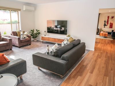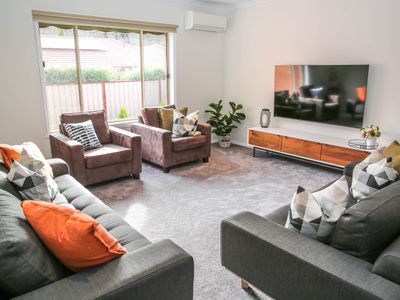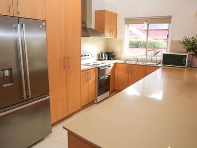 With a super-sized secure yard there is plenty of space for the kids or pets to run around while the parents enjoy a relaxing BBQ in the outdoor al fresco area and a fully equipped kitchen and open plan living means your entire group can enjoy dinners at home.