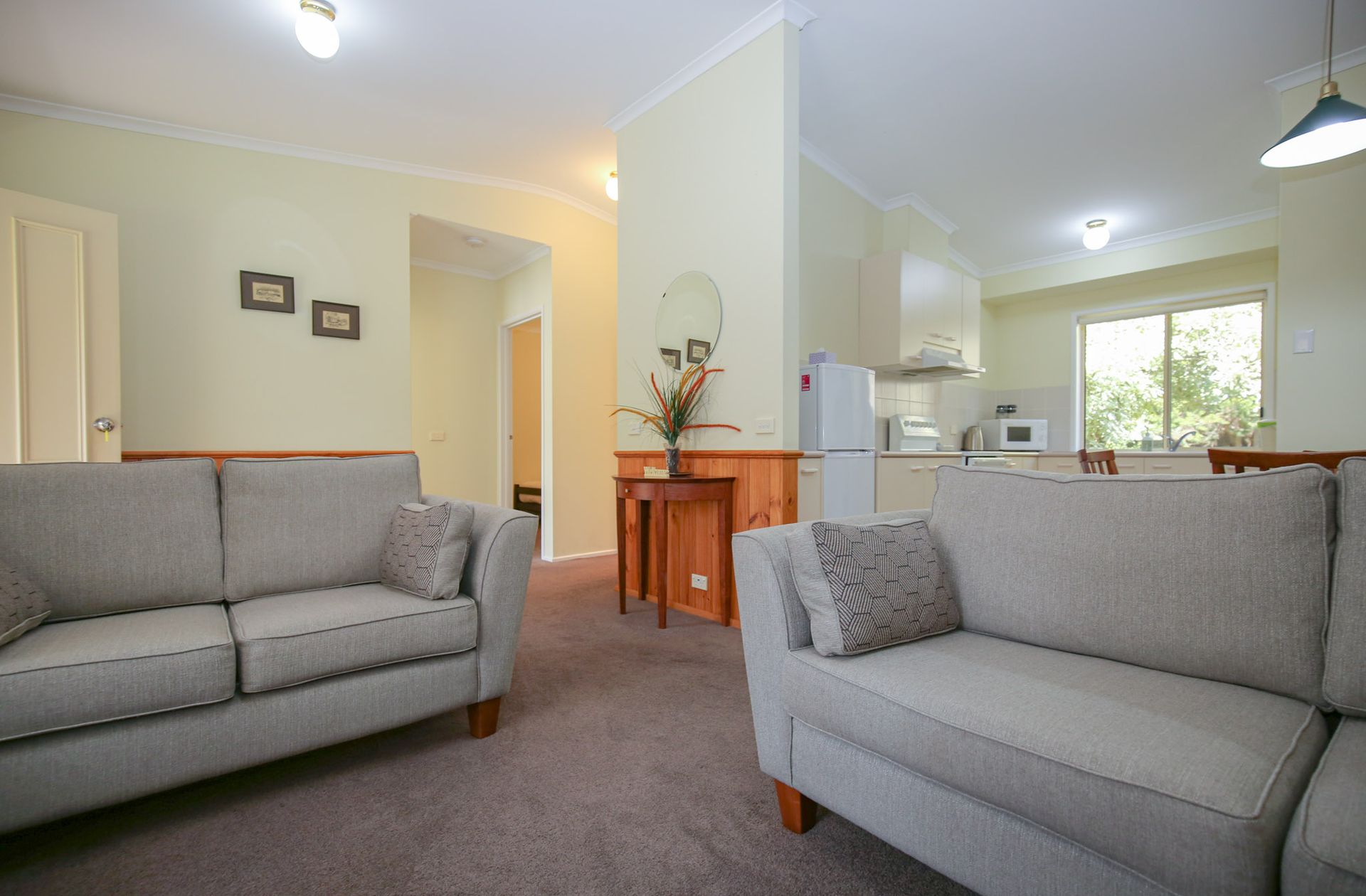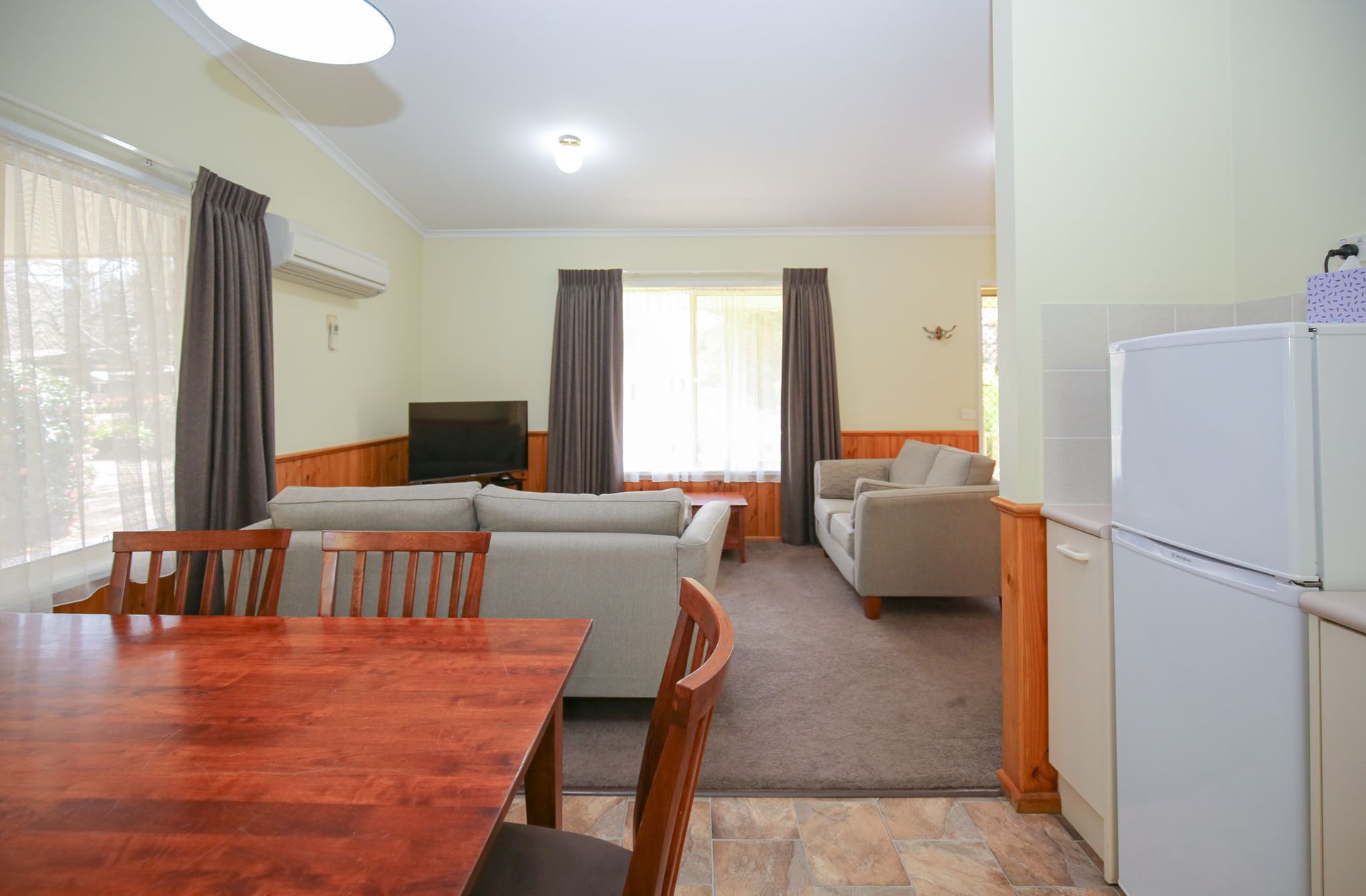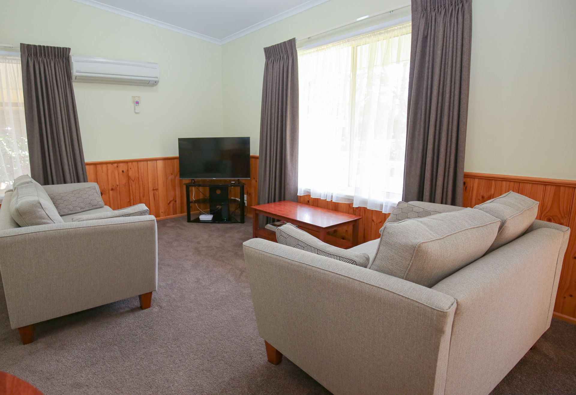 Each unit at Silver Birches features a spacious open plan living area with a flat screen TV/DVD.