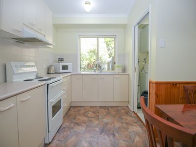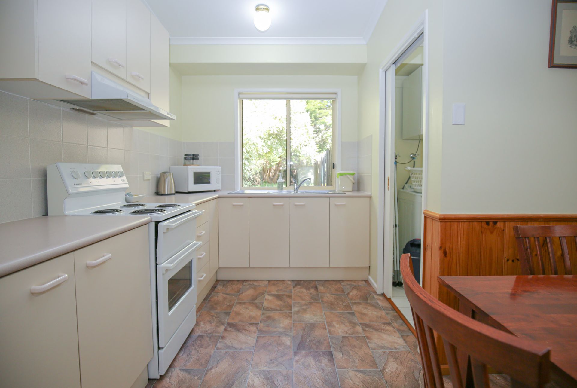 Your well equipped kitchen with oven/stove and appliances means you can feed the tribe in the comfort of your own home. The kitchen leads into your own laundry with washer & dryer then out to your own courtyard and carport.
