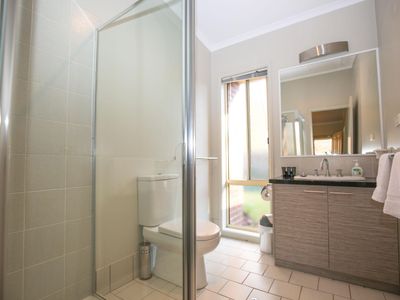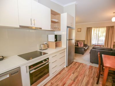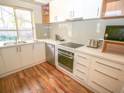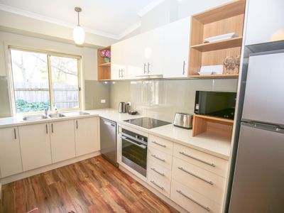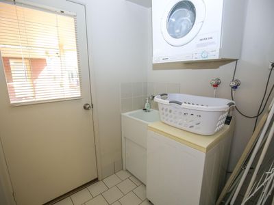 Your fully equipped kitchen with oven/stove, dishwasher and appliances means you can feed the tribe in the comfort of your own home. The kitchen leads into your own laundry with washer & dryer then out to your own courtyard and carport.