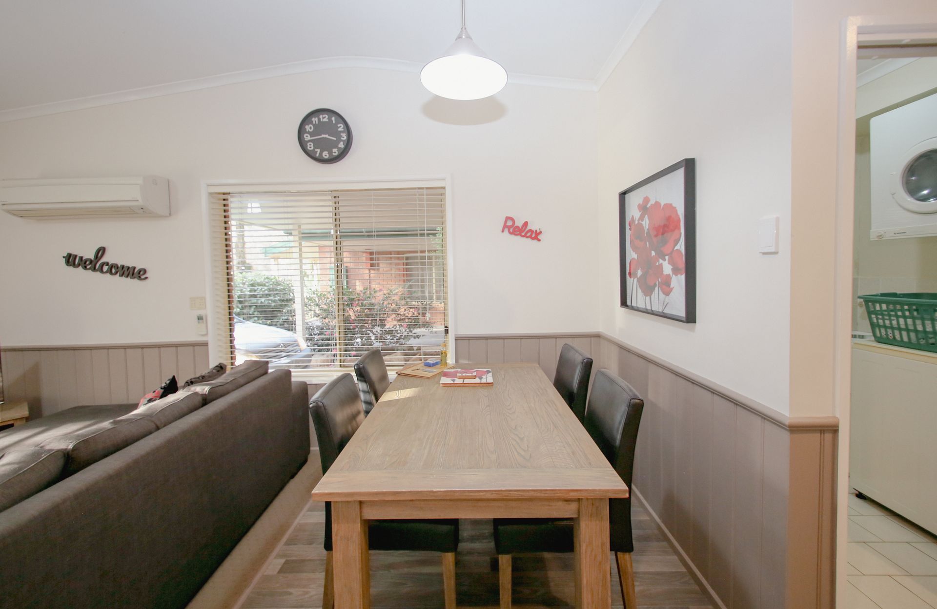 Your well equipped kitchen with oven/stove and appliances means you can feed the tribe in the comfort of your own home. The kitchen leads into your own laundry with washer & dryer then out to your own courtyard and carport.