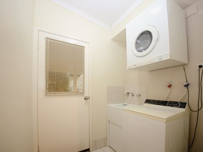 Your well equipped kitchen with oven/stove and appliances means you can feed the tribe in the comfort of your own home. The kitchen leads into your own laundry with washer & dryer then out to your own courtyard and carport.