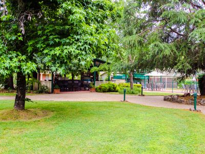 Feed the family under the huge undercover BBQ area with fully equipped camp kitchen. The dining area features lighting and ceiling fans for summer comfort - but we know you will spend most of the time in the fantastic in-ground pool.