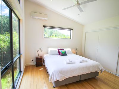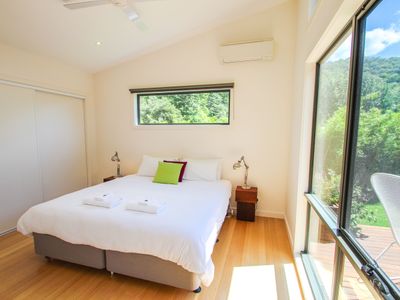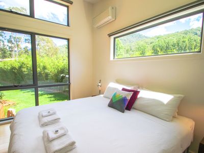 Retreat to your gorgeous bedrooms, 2 spacious King rooms with mountain views and a 3rd with 2 singles. All beds can be split to create King single beds throughout for maximum comfort for any family or group of up to 6 guests. The 2 master bedrooms feature reverse cycle heating & cooling.